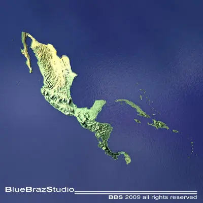 C4D file (obj-dxf-3ds) for a 3D relief map of Central America.All formats zip files has enclosed tex, material and maps. But it could need some texture reassigning.Polygons 35067Vertices 45212