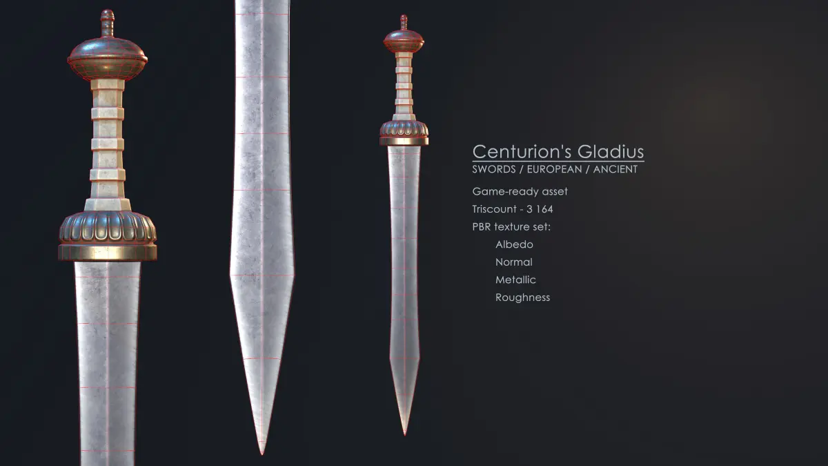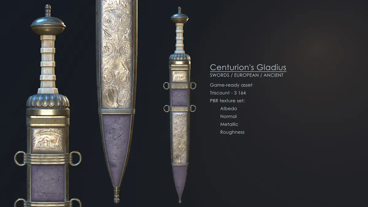 This is the 9 out of 10 European swords, ancient series.PBR texture-set: Albedo, Normal, Metallic, Roughness