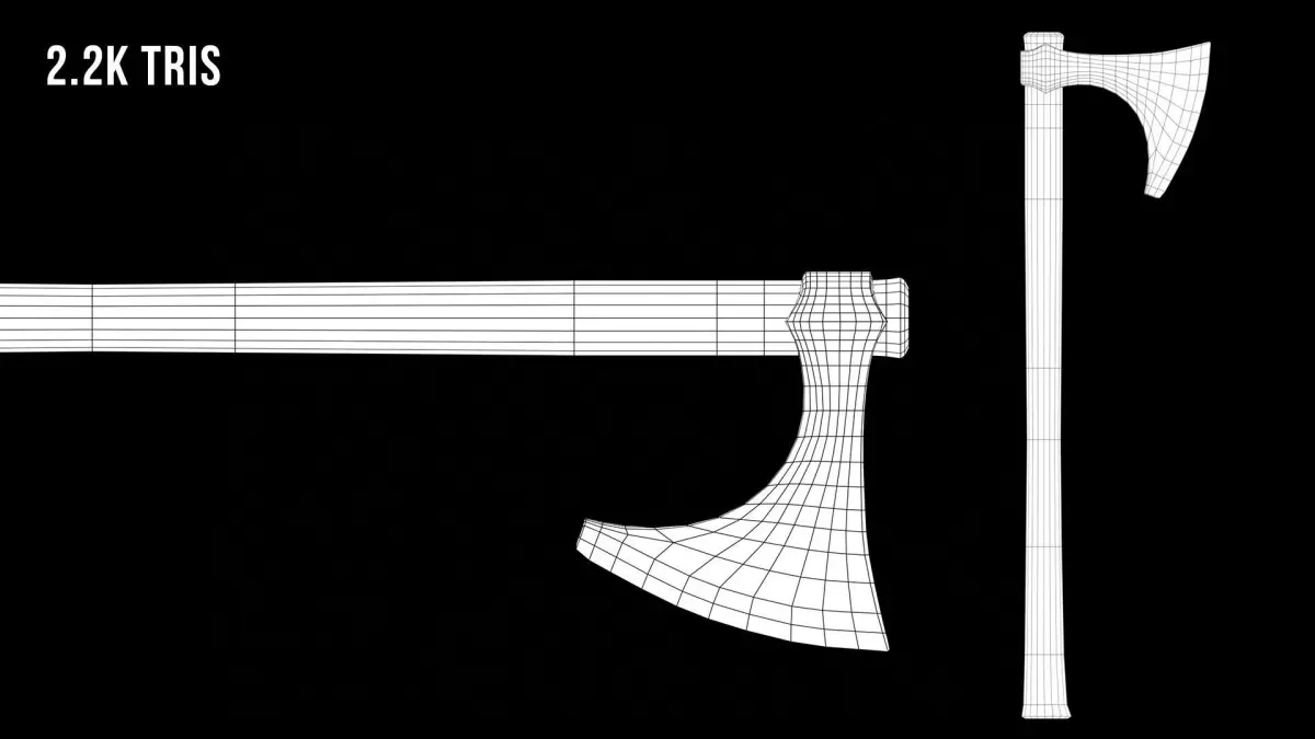 An Anglo-Saxon ċeorl’s (churl’s) axe. A weapon of the common man. Rough and ready. Not based on any strict historical reference- the shape is informed by various Norse and Anglo-Saxon weapons.