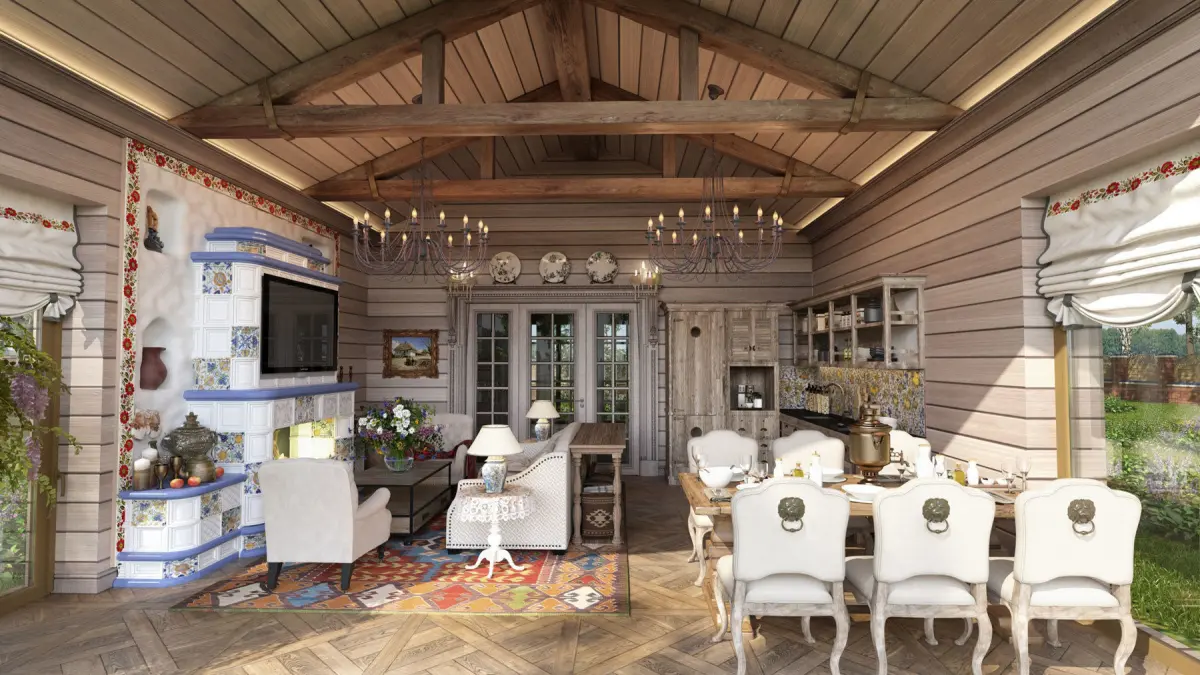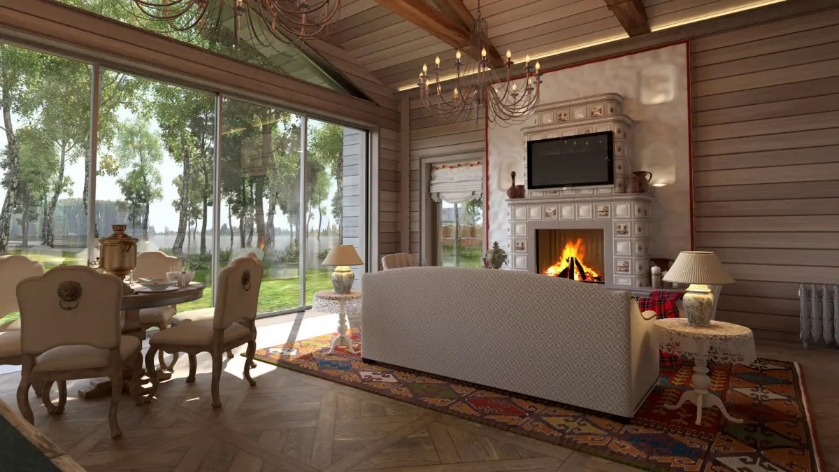 Fireplace made of ceramic tiled tiles with patterns and paintings.Ceramic fireplaceCorona and Vray materials are in the same scene in the material editor.
