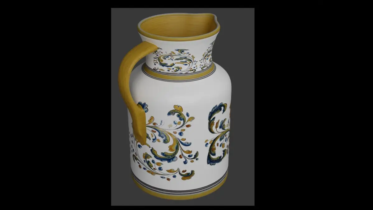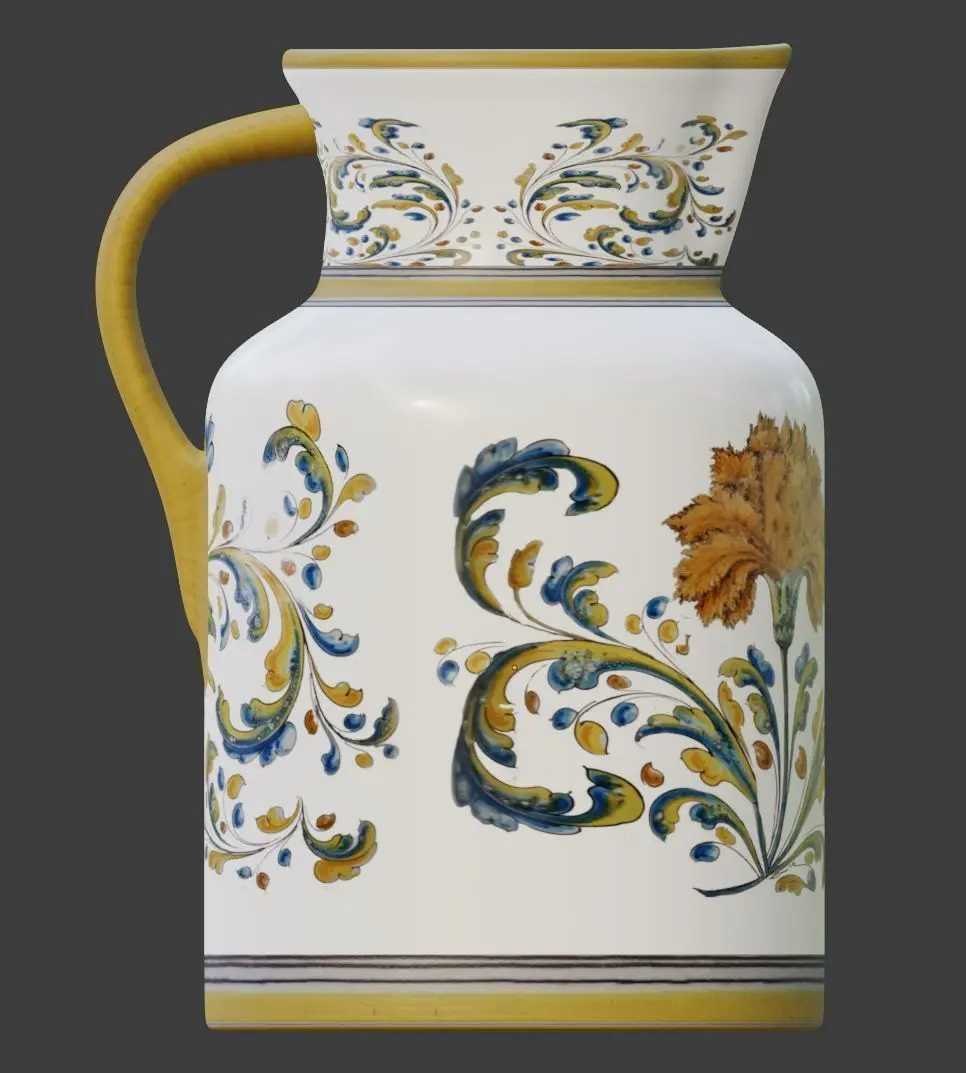 Ceramic vase with floral motifs, 47 cm high and 30 cm in diameter at its base.Modeled in Blender 2.92Unwrapped UV