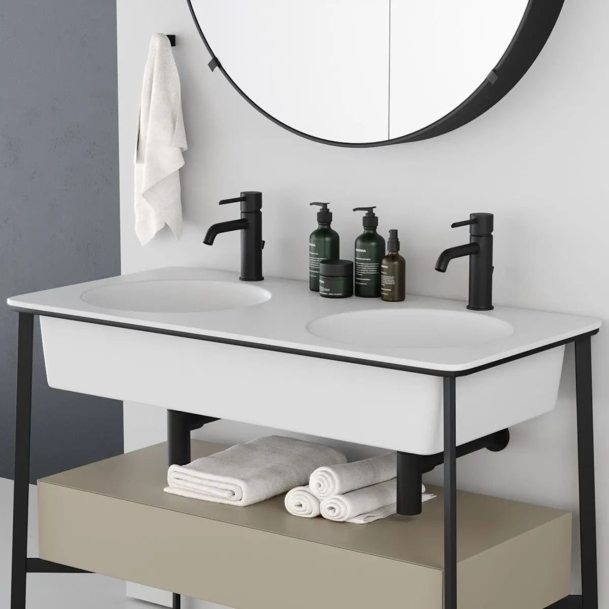 Washbasin - Ceramica Cielo Catino Doppio Collection I CatiniName of product/article - CATINO DOPPIOType - Double floor-standing vanity unitDesigners - Andrea Parisio, Giuseppe PezzanoDesign Year - 2016Dimensions: 110 x 54 x h83 cm