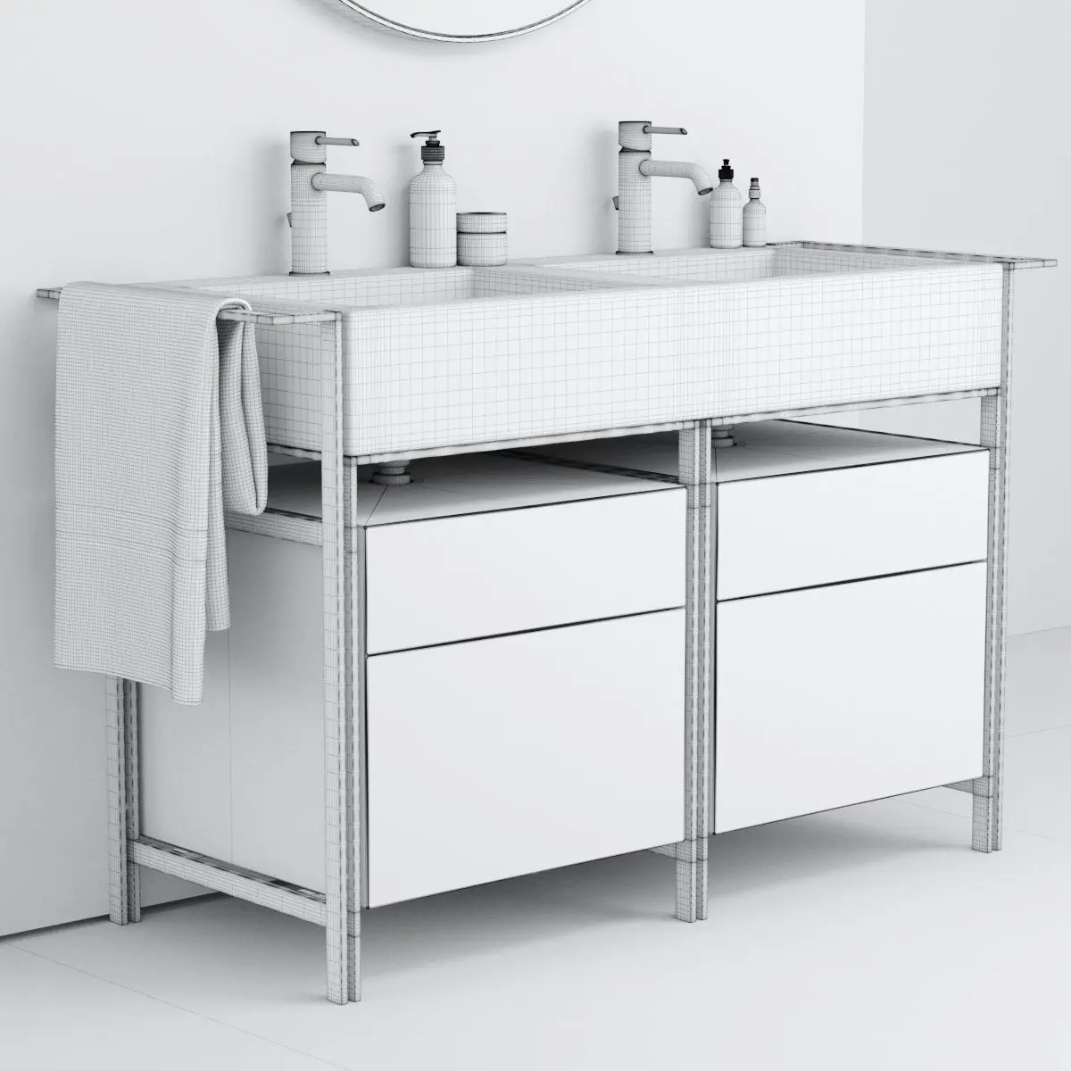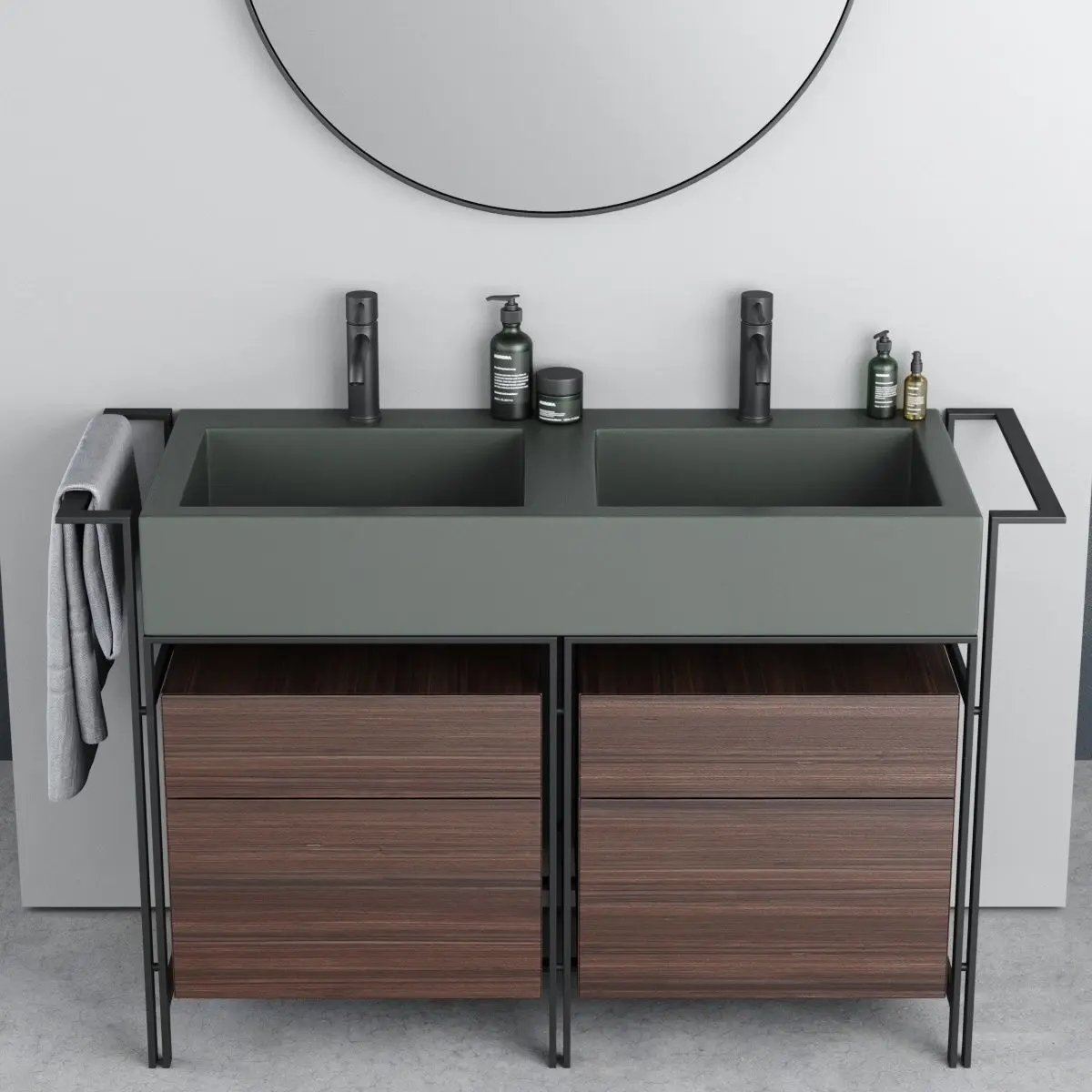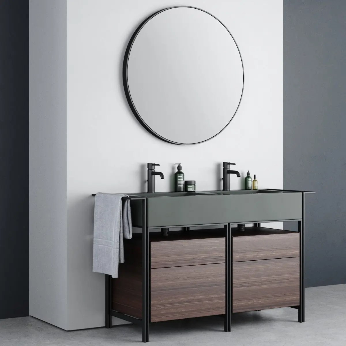 Washbasin: Collection - Narciso Name of product / article - NARCISO DOPPIO Type - Floor-standing vanity unit with drawers Materials - Ceramic, Steel and Wood Designers - Andrea Parisio, Giuseppe Pezzano Design Year - 2017