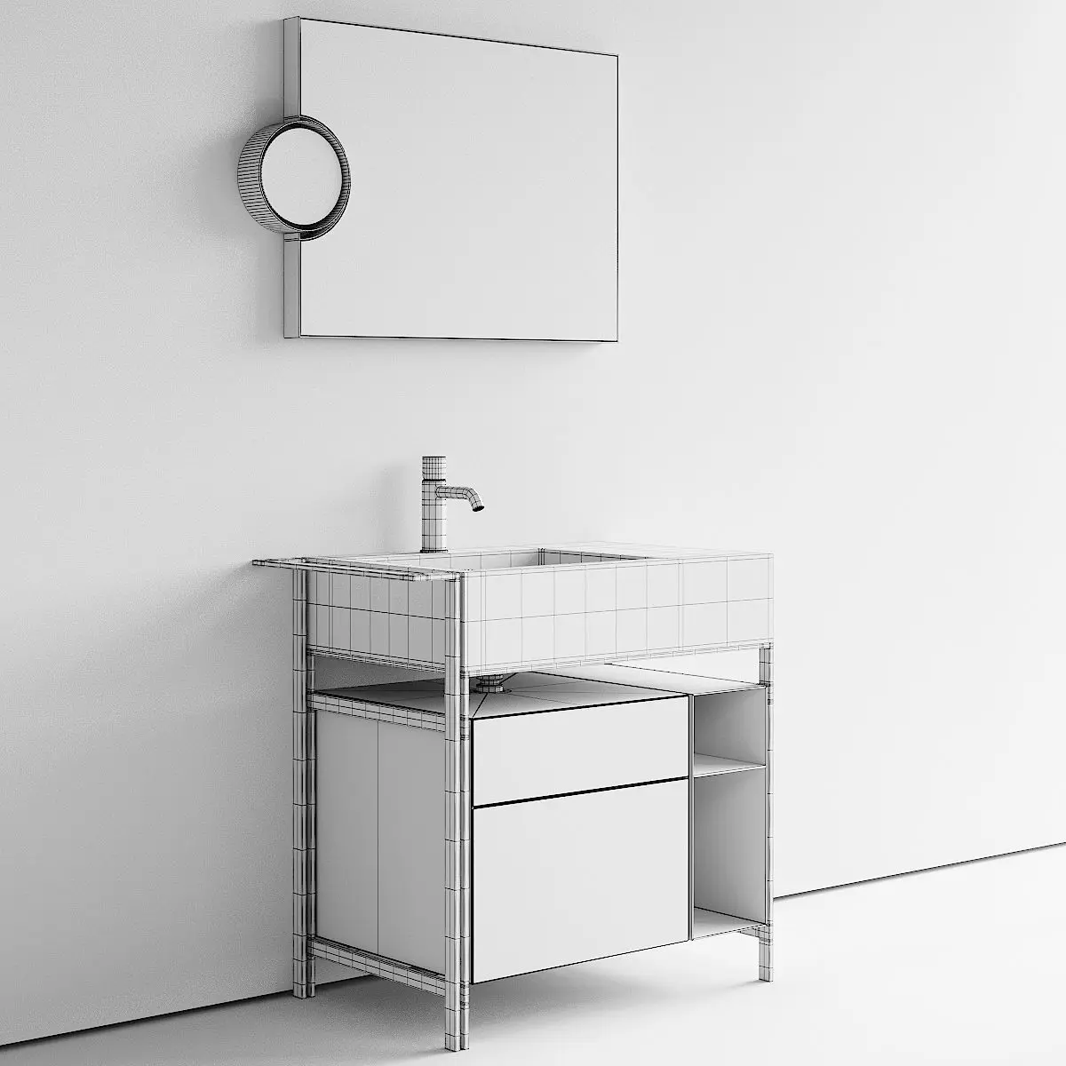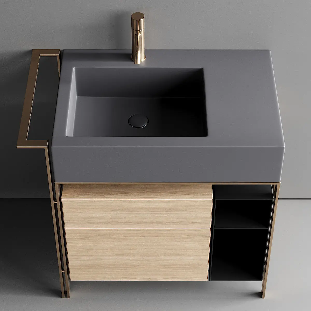Vanity Unit:Collection - NarcisoName of product/article - NARCISO MINIType - Floor-standing vanity unit with drawersMaterials - Ceramic, Steel and WoodDesigners - Andrea Parisio, Giuseppe PezzanoDesign Year - 2017Dimensions: Width - 760mm Depth - 500mm Height - 830mm