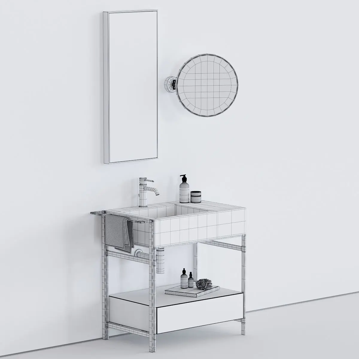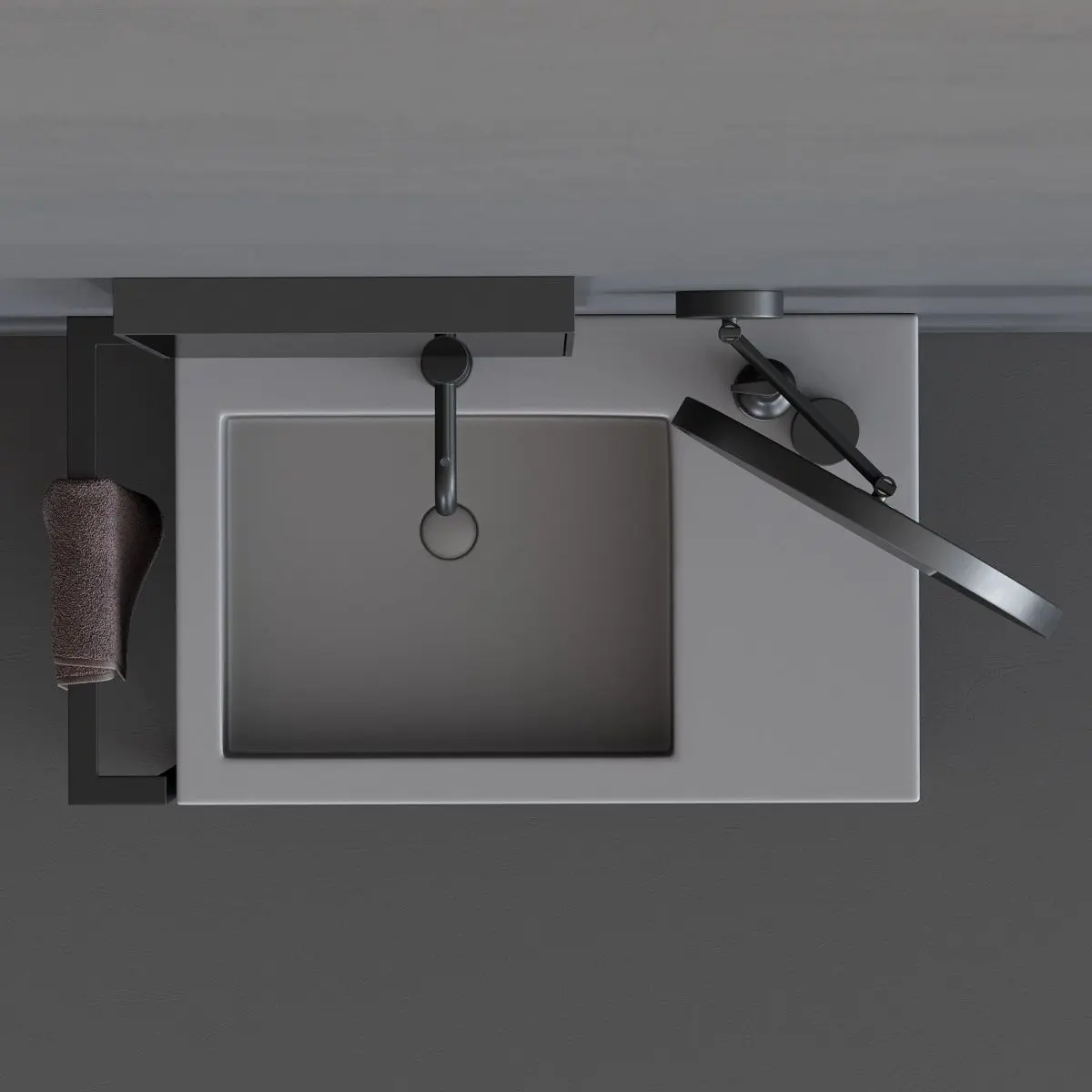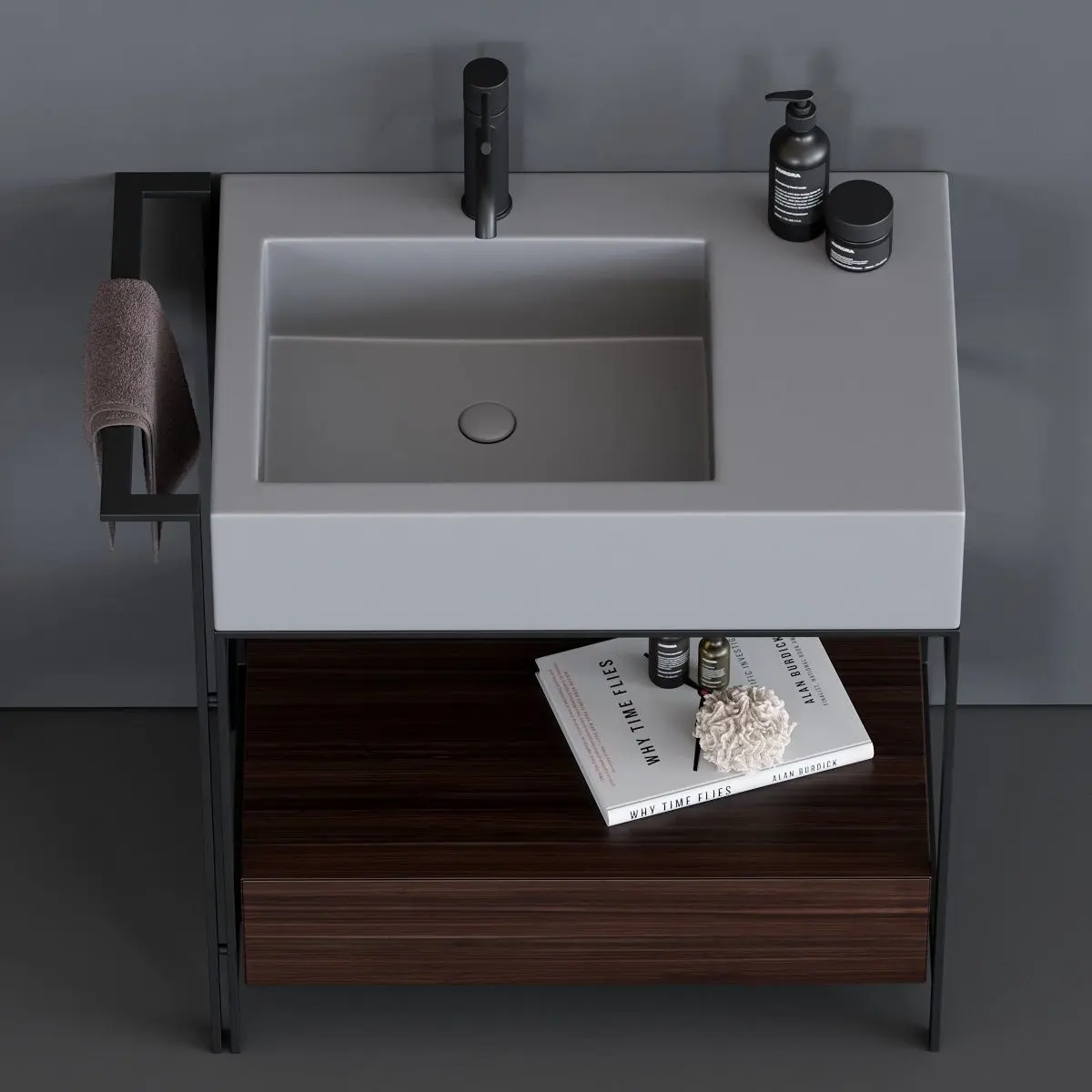Washbasin:Collection - Narciso Name of product / article - NARCISO MINI Type - Floor-standing vanity unit with drawersMaterials - Ceramic, Steel and Wood Designers - Andrea Parisio, Giuseppe Pezzano Design Year - 2017Dimensions: Width - 760mm Depth - 500mm Height - 830mm