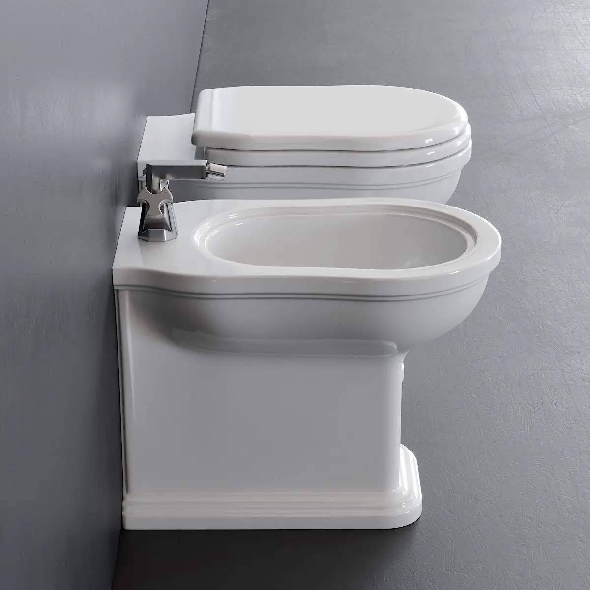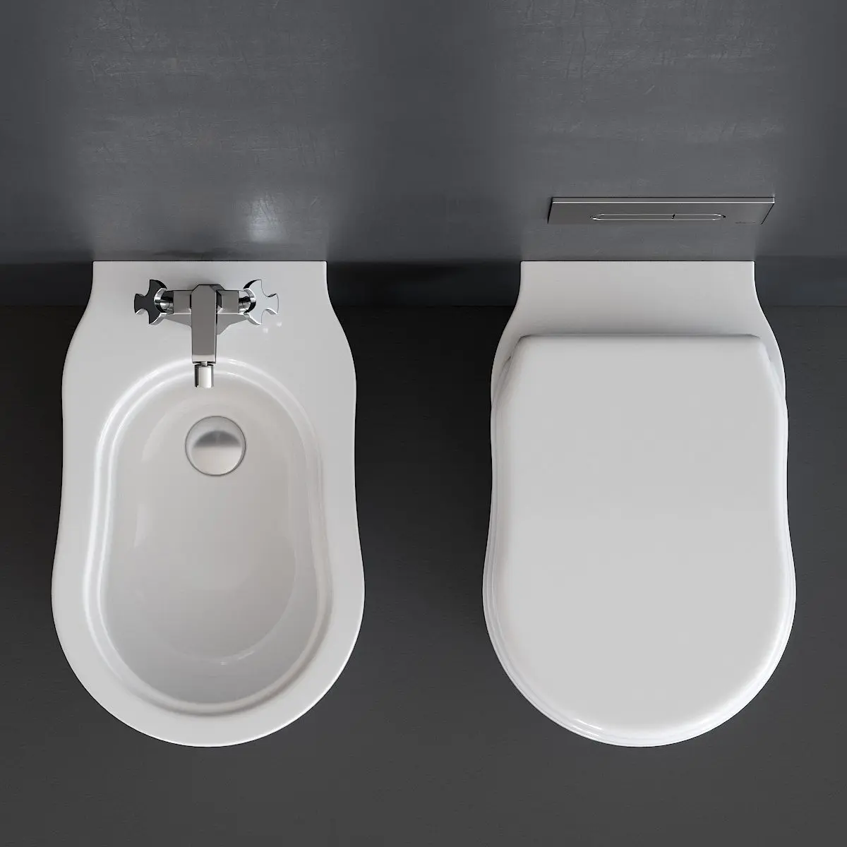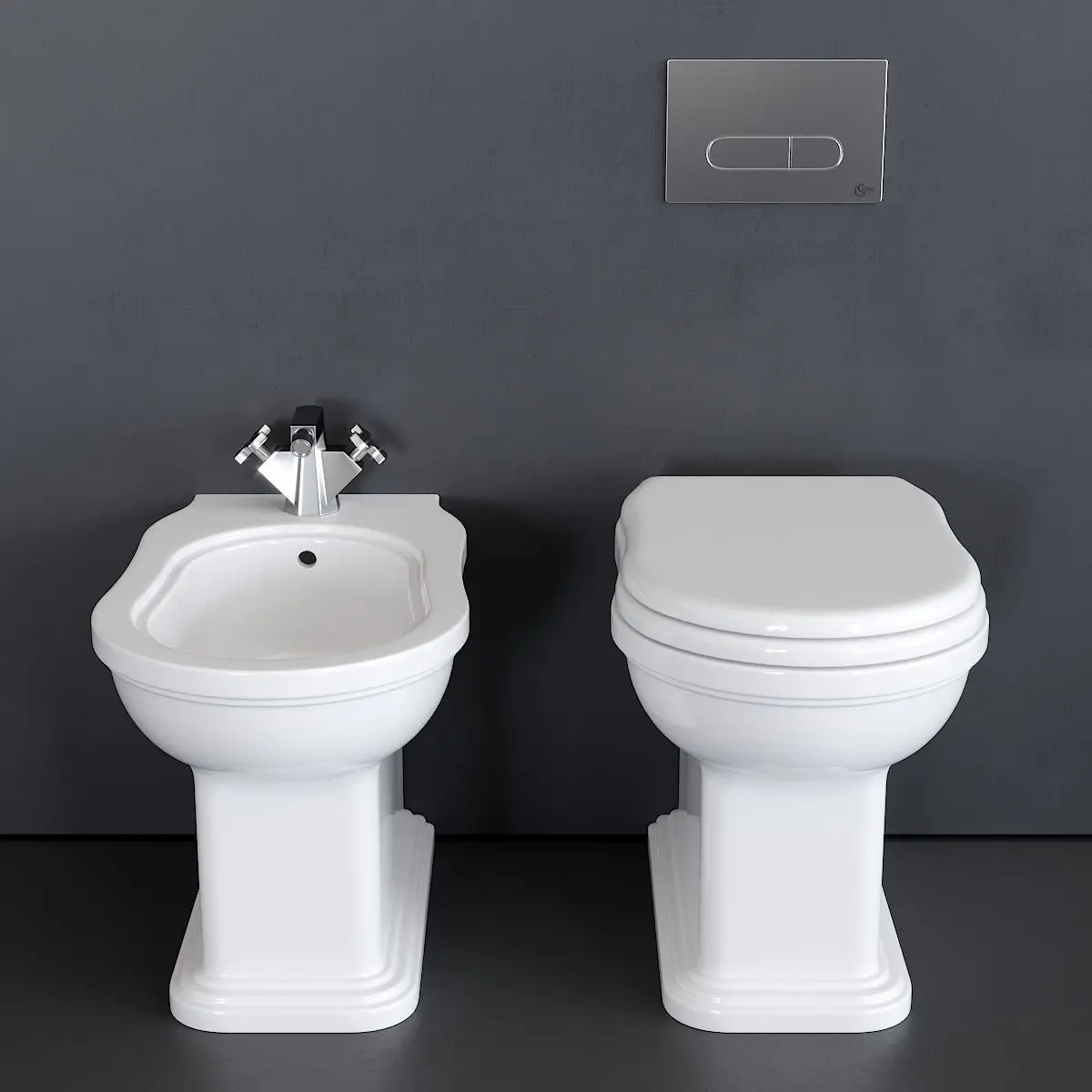 Floor mounted bidet:Collection - EfiType - Floor mounted ceramic bidetMaterials - CeramicManufacture year - 1990Product code - EF217Dimensions: Width - 360mm Depth - 560mmHeight - 420mm