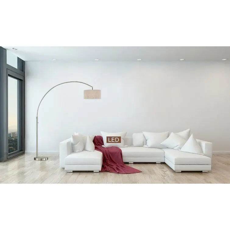 - With LED functionality, dimming capability and sophisticated simple styling, the floor lamp from this manufacturer is the best-equipped LED floor lamp to brighten up any living space in your home or office. Its simple, modern arch design and finish allow this lamp to have a prominent presence in any setting. This new LED dimming system and adjustable large premium tan drum shade allow this lamp to reach any dark corner of your living space with ease. With a heavy-weighted base, this lamp is a durable and energy-efficient LED lamp with 1500 lumens (100W brightness uses only 12W of energy) that is bound to last for many years to come.