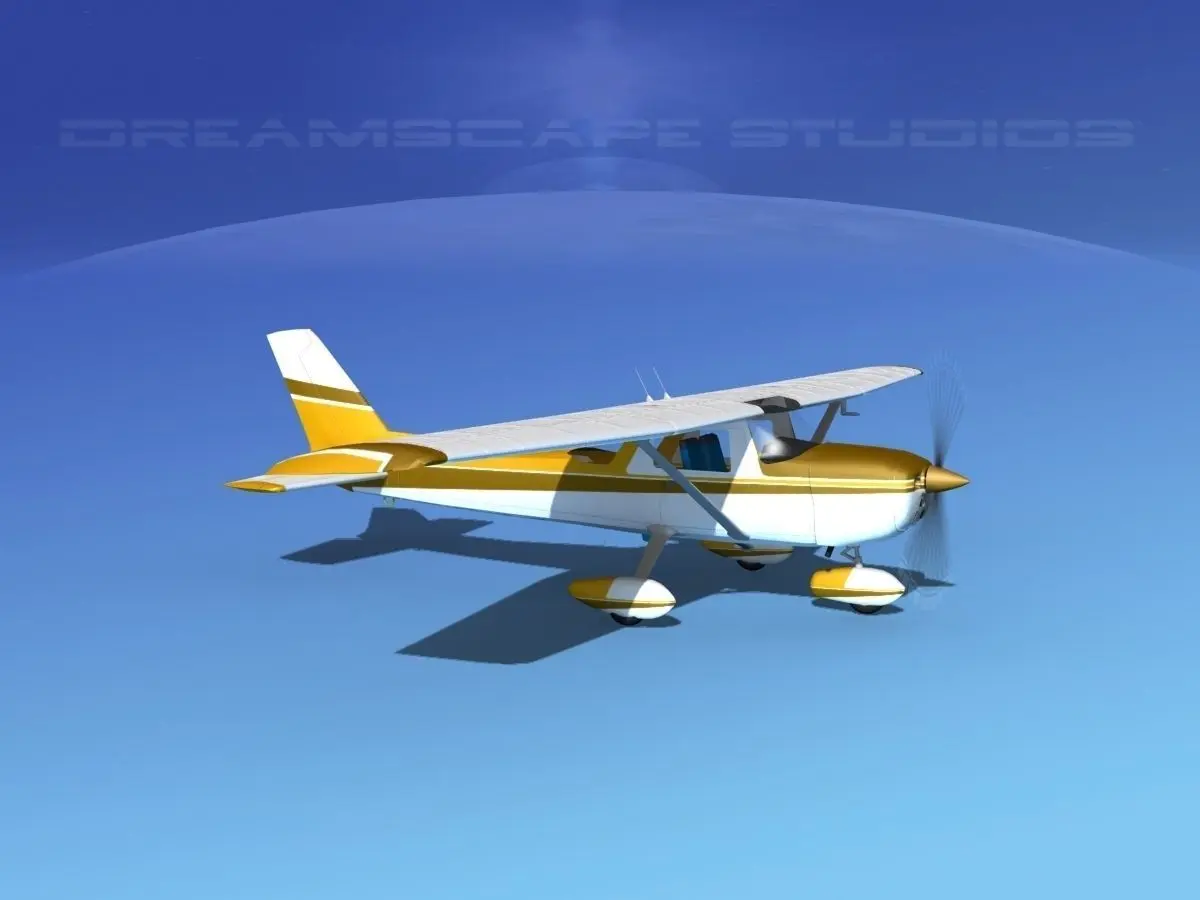 This model is a Cessna 150 Commuter single engine high-wing monoplane two seat aircraft. It was built very near to scale of actual general dimensions. It was built with a good level of exterior detail. Propeller is animated. It has many animateable features including ailerons, flaps, elevators and rudder. It has seating and basic controls to allow shots from distance to look more realistic.The textures and materials are included as shown here. The model is also provided in 8 formats.