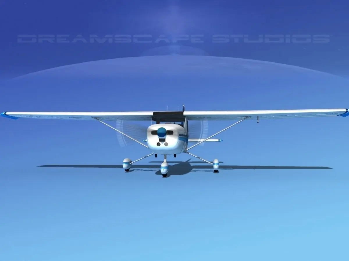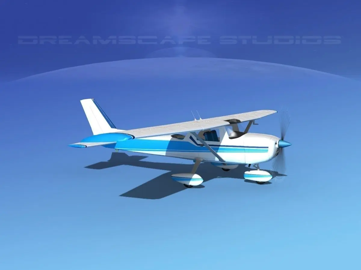 This model is a Cessna 150 Commuter single engine high-wing monoplane two seat aircraft. It was built very near to scale of actual general dimensions. It was built with a good level of exterior detail. Propeller is animated. It has many animateable features including ailerons, flaps, elevators and rudder. It has seating and basic controls to allow shots from distance to look more realistic.The textures and materials are included as shown here. The model is also provided in several different formats.