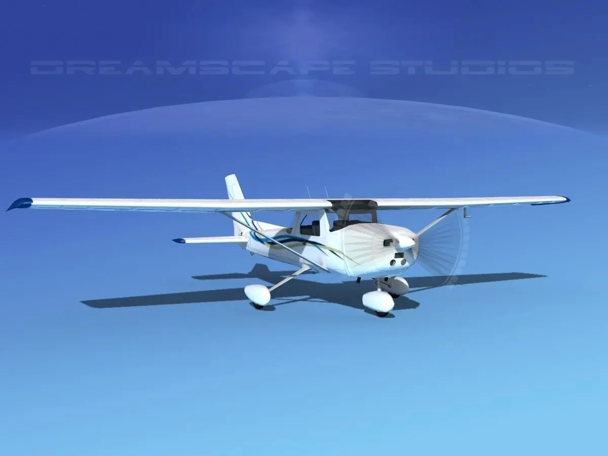 This model is a Cessna 152 Commuter single engine high-wing monoplane two seat aircraft. It was built very near to scale of actual general dimensions. It was built with a good level of exterior detail. Propeller is animated. It has many animateable features including ailerons, flaps, elevators and rudder. It has seating and basic controls to allow shots from distance to look more realistic.The textures and materials are included as shown here. The model is also provided in 8 formats.