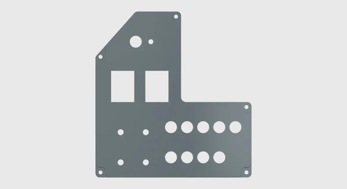 NOTE:Overall dimensions : 155mm W 165mm H 4mm DToggle switches hole diameter : 12mm & 6mmRocker Switch cutouts : 31x23mmPotentiometers hole diameter : 6mm