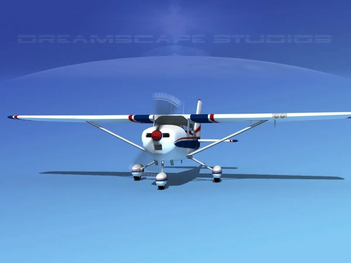 Cessna 172 is built very near to scale as actual real life general dimensions. It has many animateable features including ailerons, flaps, elevators, rudder. Propeller is animated. This model is fairly detailed and includes the ELT antenna and pitot tube as well as some interior cabin features and controls. The interior is viewable from the exterior. It has a nice textured instrument panel and some control features. This model was updated in Feb 2017 with additional detail, better geometry, textures and higher quality. It comes in several different formats with all materials and textures as shown here.