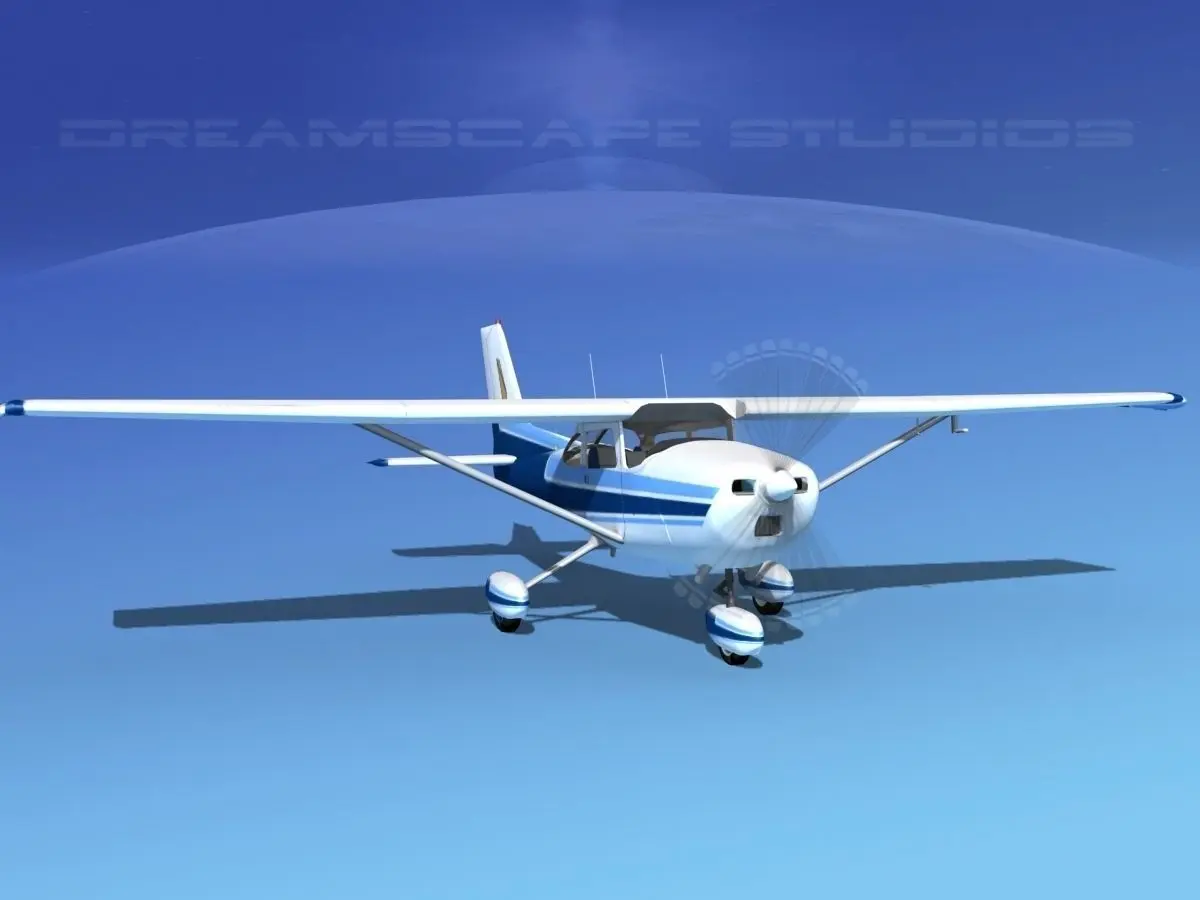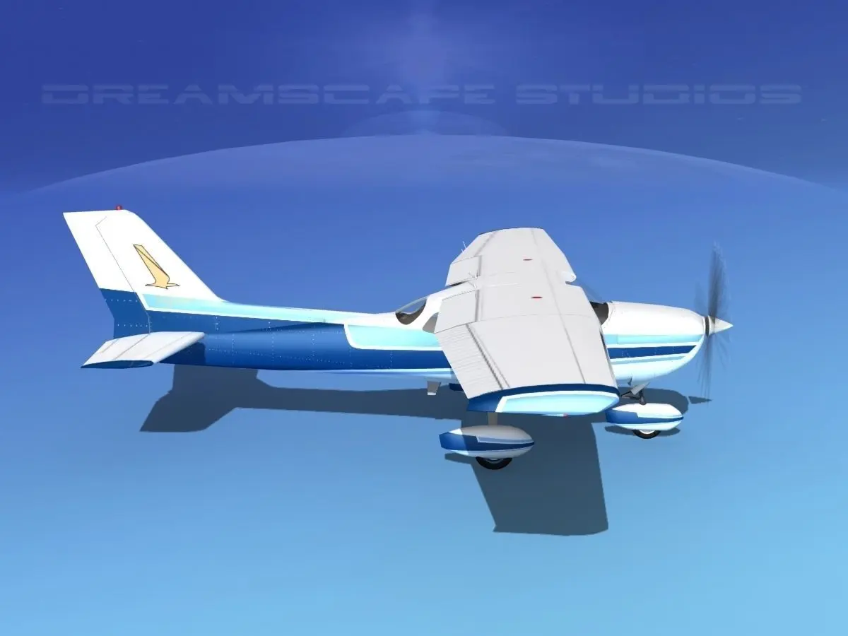 Cessna 172 is built very near to scale of actual general dimensions. It has many animateable features including ailerons, flaps, elevators, rudder, retractable landing gear and nose gear doors. Propellers are animated. The engine, engine mount exhaust and intake systems are modeled. The cowling can be removed to show the engine and propeller at a moderate distance. This model is fairly detailed and includes the ELT antenna and pitot tube as well as some interior cabin features and controls. Included are the yokes, throttle and engine controls, new instrument panel and seating. It comes in 8 formats and can be used in an animated or static position within an animated video or possibly for programming for a flight simulation application. This model was not designed for 3d printing, these are digital files only.The Cessna 172 Skyhawk is a four seat, single engine, high wing, fixed-wing aircraft. First flown in 1955, the Cessna 172 is the most successful mass produced light aircraft in history with over 43,000 produced. They have been used as a basic trainer, family transport, air taxi, bush plane, and a wide range of other missions.