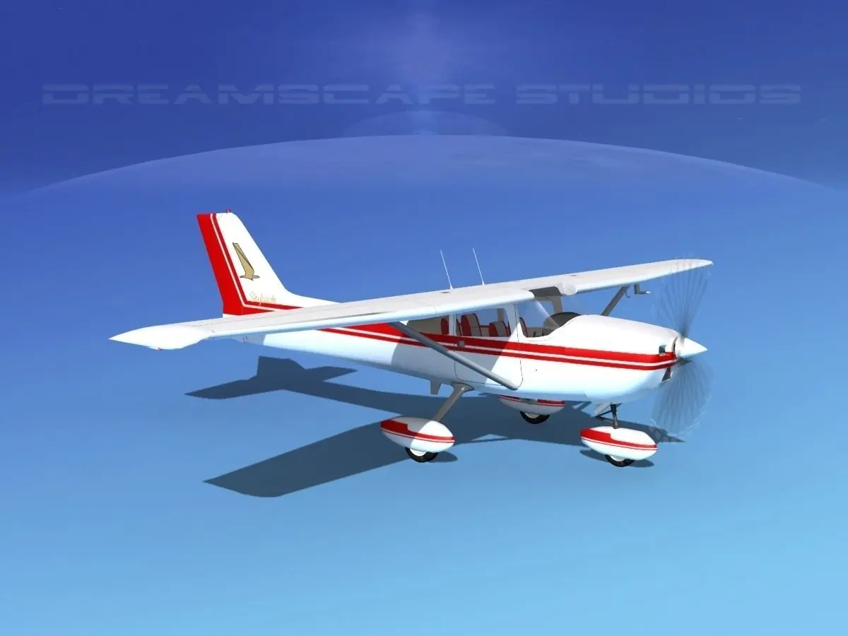 Cessna 172 is built very near to scale of actual general dimensions. It has many animateable features including ailerons, flaps, elevators, rudder, retractable landing gear and nose gear doors. Propellers are animated. The engine, engine mount exhaust and intake systems are modeled. The cowling can be removed to show the engine and propeller at a moderate distance. This model is fairly detailed and includes the ELT antenna and pitot tube as well as some interior cabin features and controls. Included are the yokes, throttle and engine controls, new instrument panel and seating. It comes in 8 formats and was updated in February 2017.