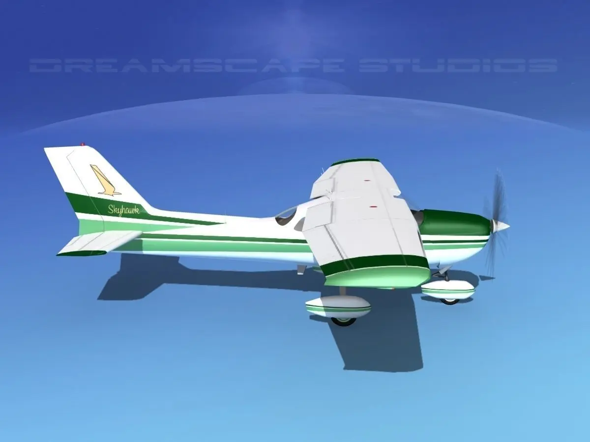 Cessna 172 is built very near to scale of actual general dimensions. It has many animateable features including ailerons, flaps, elevators, rudder, retractable landing gear and nose gear doors. Propellers are animated. The engine, engine mount exhaust and intake systems are modeled. The cowling can be removed to show the engine and propeller at a moderate distance. This model is fairly detailed and includes the ELT antenna and pitot tube as well as some interior cabin features and controls. Included are the yokes, throttle and engine controls, new instrument panel and seating. It comes in 8 formats and was updated in February 2017.