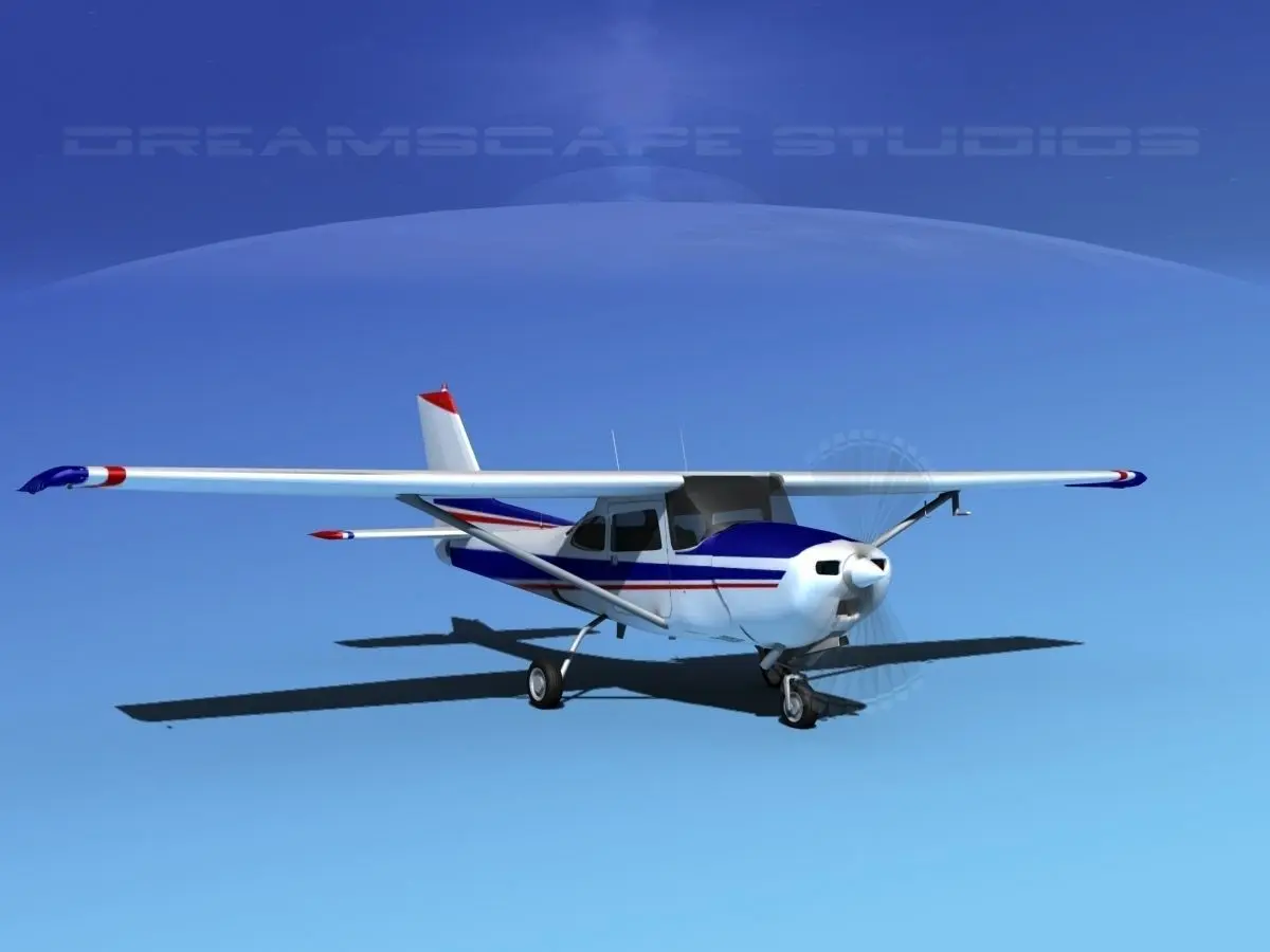 Cessna 172 Cutlass is built very near to scale of actual general dimensions. It has many animateable features including ailerons, flaps, elevators, rudder, retractable landing gear and nose gear doors. Propellers are animated. This model is fairly detailed and includes the ELT antenna and picot tube as well as some interior cabin features and controls. It has a nice instrument panel. It comes in several different formats.