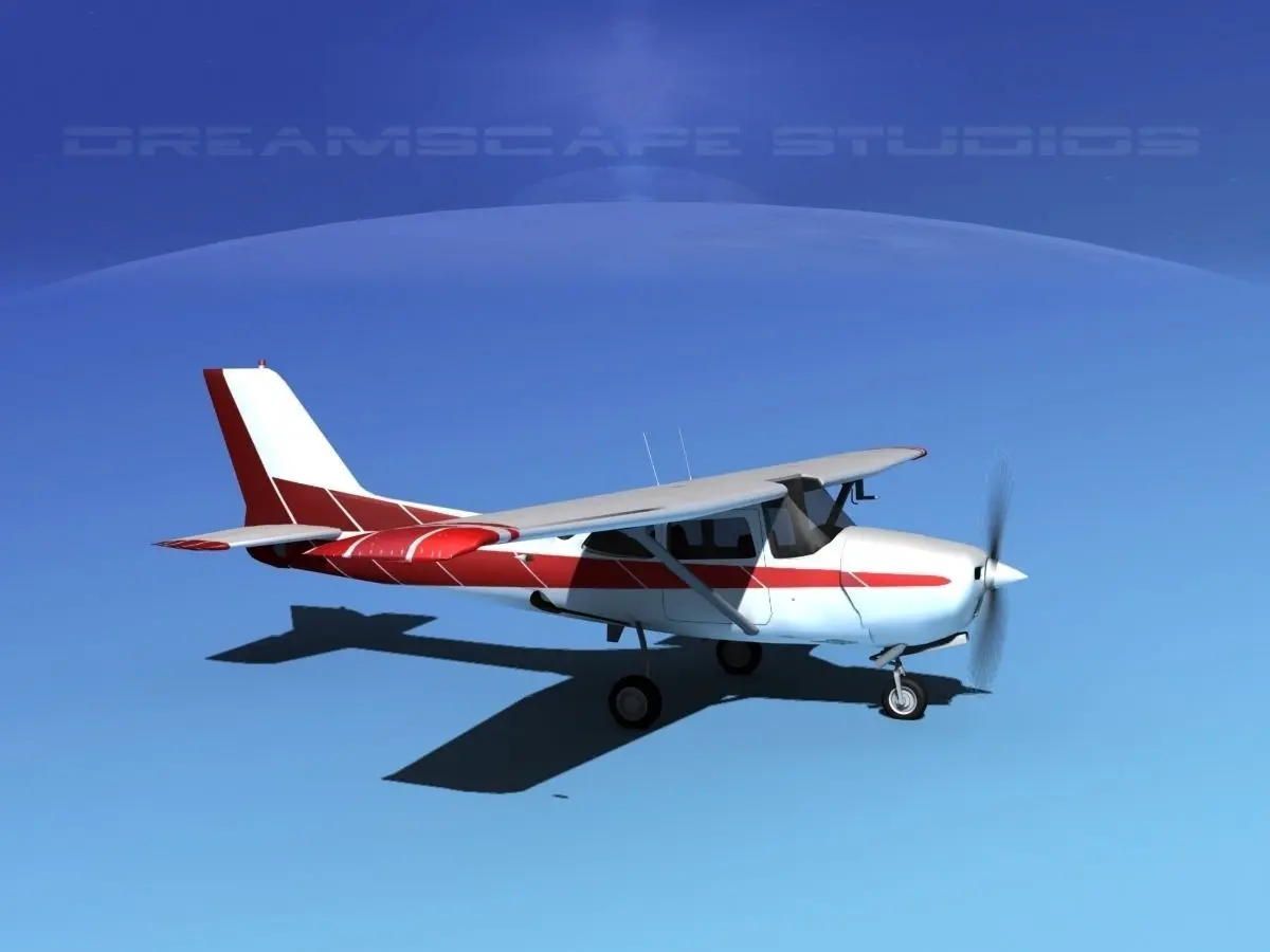 Cessna 172 Cutlass is built very near to scale of actual general dimensions. It has many animateable features including ailerons, flaps, elevators, rudder, retractable landing gear and nose gear doors. Propellers are animated. This model is fairly detailed and includes the ELT antenna and picot tube as well as some interior cabin features and controls. It has a nice instrument panel. It comes in several different formats.