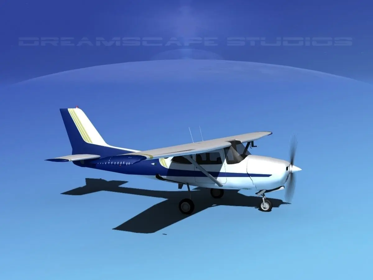 Cessna 172 Cutlass is built very near to scale of actual general dimensions. It has many animateable features including ailerons, flaps, elevators, rudder, retractable landing gear and nose gear doors. Propellers are animated. This model is fairly detailed and includes the ELT antenna and picot tube as well as some interior cabin features and controls. It has a nice instrument panel. It comes in several different formats.