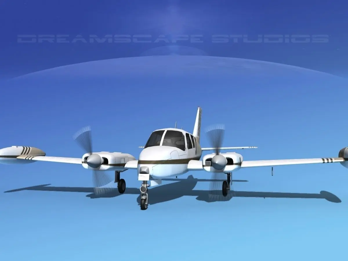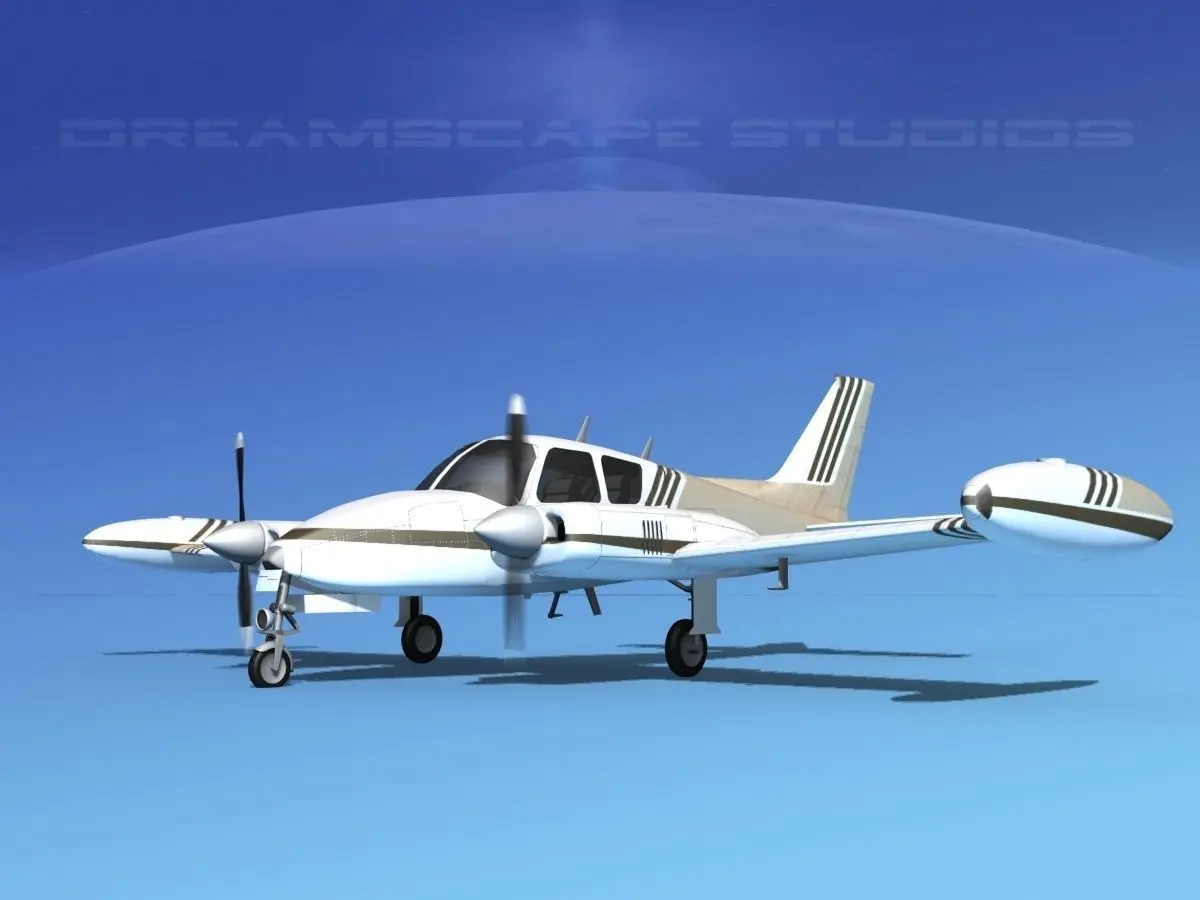 This model was built near to scale, within 3% of general dimensions. It includes a lot of exterior detail and general cabin and cockpit modeling. The model is fully textured. It is representative of the Cessna 310D built in 1964. This model also has animateable landing gear retraction, flaps, landing gear doors, ailerons, elevators and rudder as well as animated propellers. This model also has engines and oil coolers modeled and textured. Tires and wheels are animateable also. The model includes a textured instrument panel and some animateable controls.