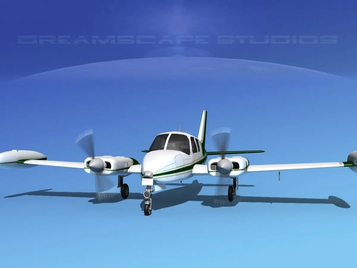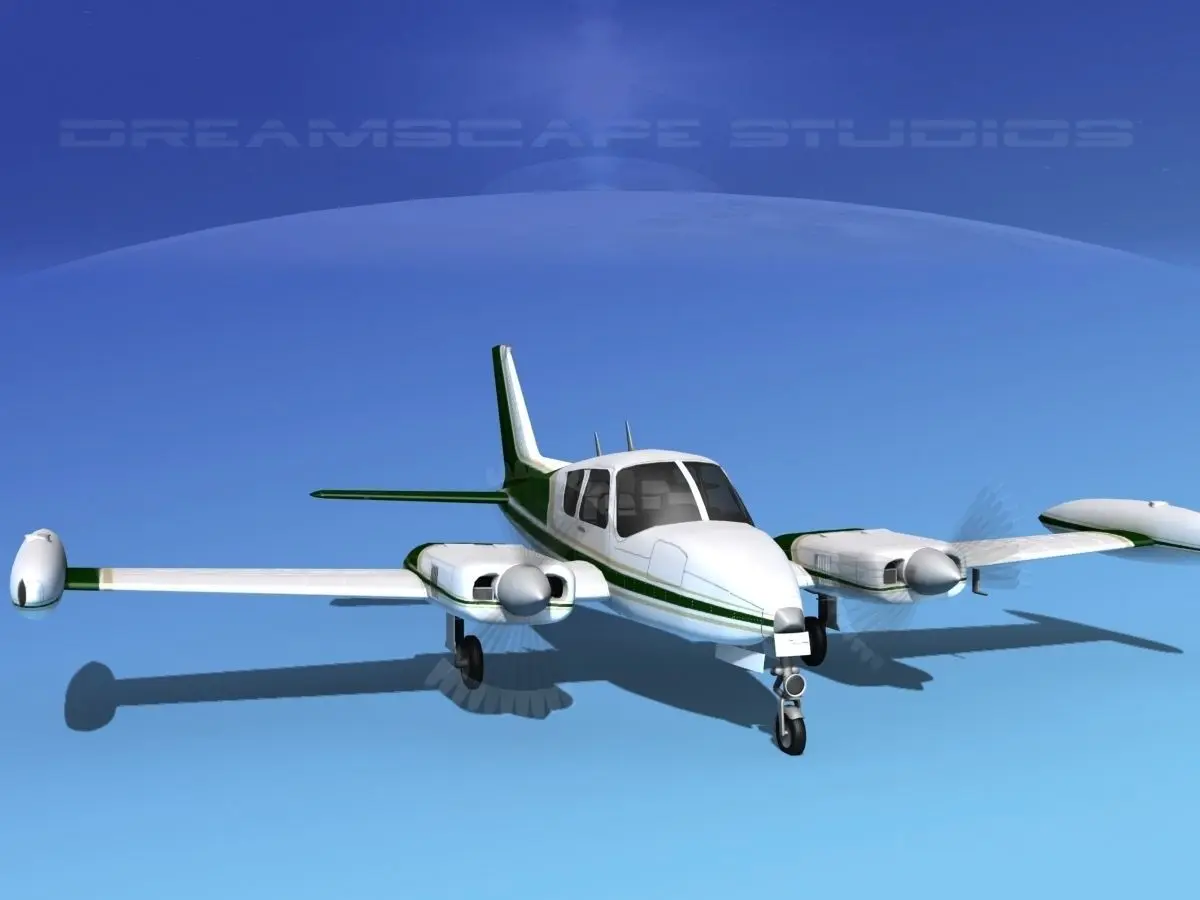 This model was built near to scale, within 3% of general dimensions. It includes a lot of exterior detail and general cabin and cockpit modeling. The model is fully textured. It is representative of the Cessna 310D built in 1964. This model also has animateable landing gear retraction, flaps, landing gear doors, ailerons, elevators and rudder as well as animated propellers. This model also has engines and oil coolers modeled and textured. Tires and wheels are animateable also. The model includes a textured instrument panel and some animateable controls.