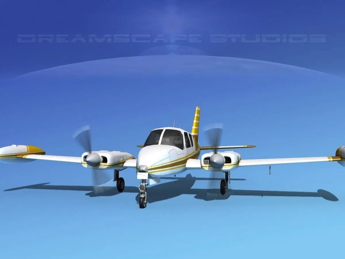 This model was built near to scale, within 3% of general dimensions. It includes a lot of exterior detail and general cabin and cockpit modeling. The model is fully textured. It is representative of the Cessna 310D built in 1964. This model also has animateable landing gear retraction, flaps, landing gear doors, ailerons, elevators and rudder as well as animated propellers. This model also has engines and oil coolers modeled and textured. Tires and wheels are animateable also. The model includes a textured instrument panel and some animateable controls.