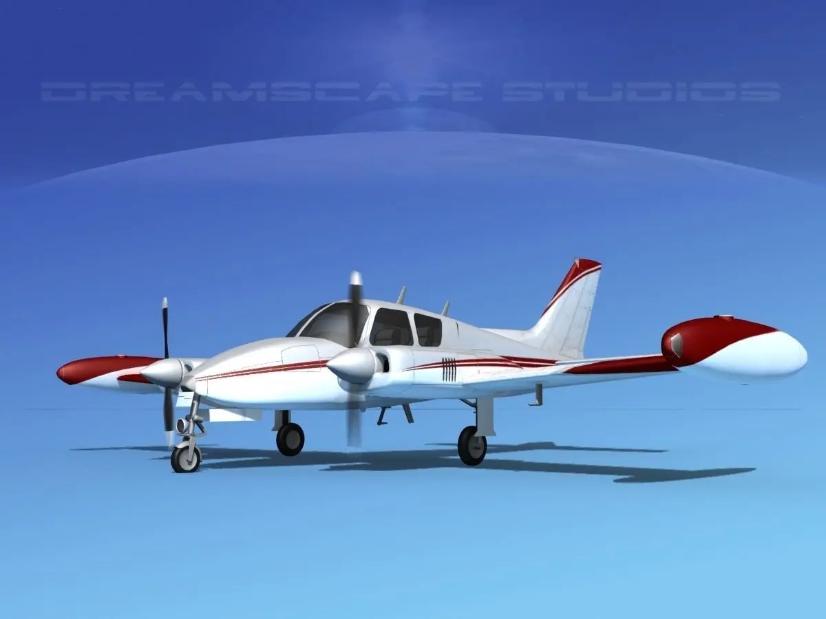 This model was built near to scale, within 3% of general dimensions. It includes a lot of exterior detail and general cabin and cockpit modeling. The model is fully textured. It is representative of the Cessna 310D built in 1964. This model also has animateable landing gear retraction, flaps, landing gear doors, ailerons, elevators and rudder as well as animated propellers. This model also has engines and oil coolers modeled and textured. Tires and wheels are animateable also. The model includes a textured instrument panel and some animateable controls.