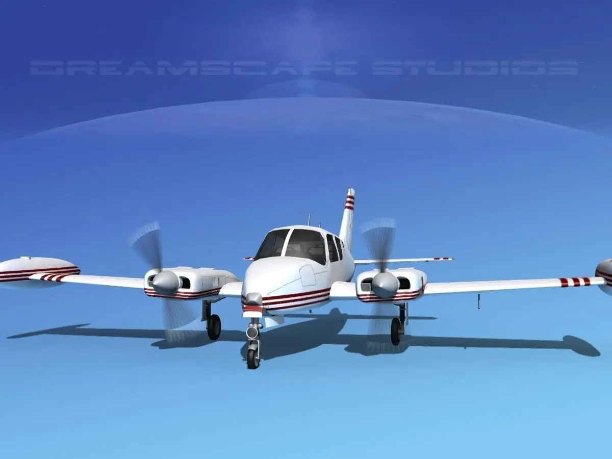 This model was built near to scale, within 3% of general dimensions. It includes a lot of exterior detail and general cabin and cockpit modeling. The model is fully textured. It is representative of the Cessna 310D built in 1964. This model also has animateable landing gear retraction, flaps, landing gear doors, ailerons, elevators and rudder as well as animated propellers. This model also has engines and oil coolers modeled and textured. Tires and wheels are animateable also. The model includes a textured instrument panel and some animateable controls.