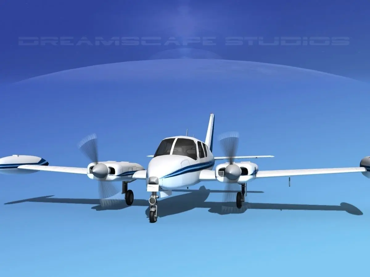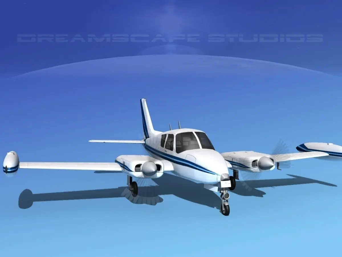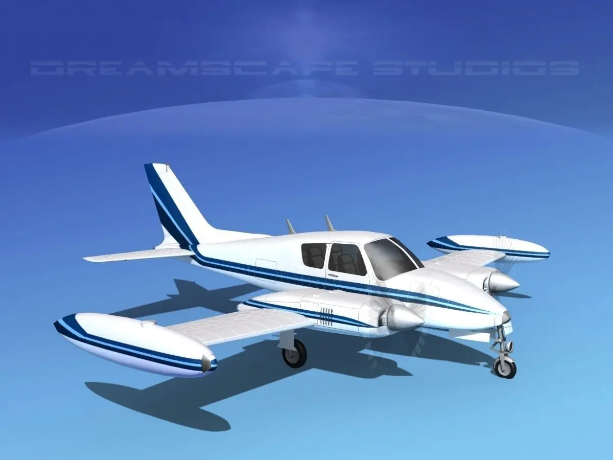 This model was built near to scale, within 3% of general dimensions. It includes a lot of exterior detail and general cabin and cockpit modeling. The model is fully textured. It is representative of the Cessna 310D built in 1964. This model also has animateable landing gear retraction, flaps, landing gear doors, ailerons, elevators and rudder as well as animated propellers. This model also has engines and oil coolers modeled and textured. Tires and wheels are animateable also. The model includes a textured instrument panel and some animateable controls.