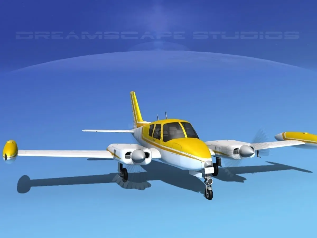 This model was built near to scale, within 3% of general dimensions. It includes a lot of exterior detail and general cabin and cockpit modeling. The model is fully textured. It is representative of the Cessna 310D built in 1964. This model also has animateable landing gear retraction, flaps, landing gear doors, ailerons, elevators and rudder as well as animated propellers. This model also has engines and oil coolers modeled and textured. Tires and wheels are animateable also. The model includes a textured instrument panel and some animateable controls.