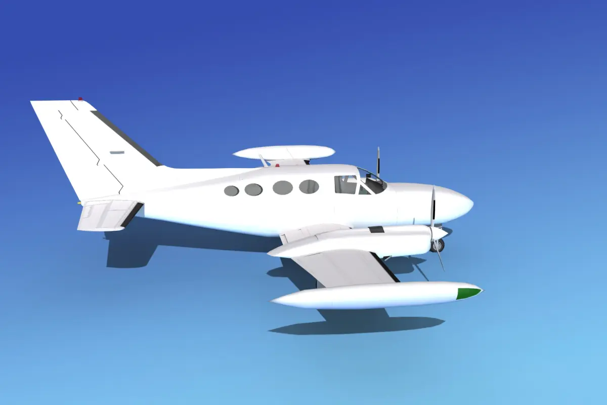 This model is built near to scale within a few inches of actual general dimensions in detail and fully textured. It hasmany animatable features including flaps, elevators, rudder, ailerons,propellers, landing gear and doors. The cockpit is viewable from the exterior showing detail. The interior cabinseating is also included. This model is also available in a wide range of formats . The Cessna 421 Golden Eagle is a further development of theearlier Cessna 411. It is a light twin-engine personal civilian transport aircraft. The Cessna 421 has seating for 6 passengers and crew. It can be flown by one or two crewmembers. The Cessna 421 uses Continental GTSIO-520-D engines. The propeller isgeared to reduce rpm off the crankshaft of the engines. The 421 a models were produced beginning in1967 and was redesigned and marketed in 1970 as the 421B. Some 421s were modified to accept the turboprop engines which made them very much like the Cessna 425.