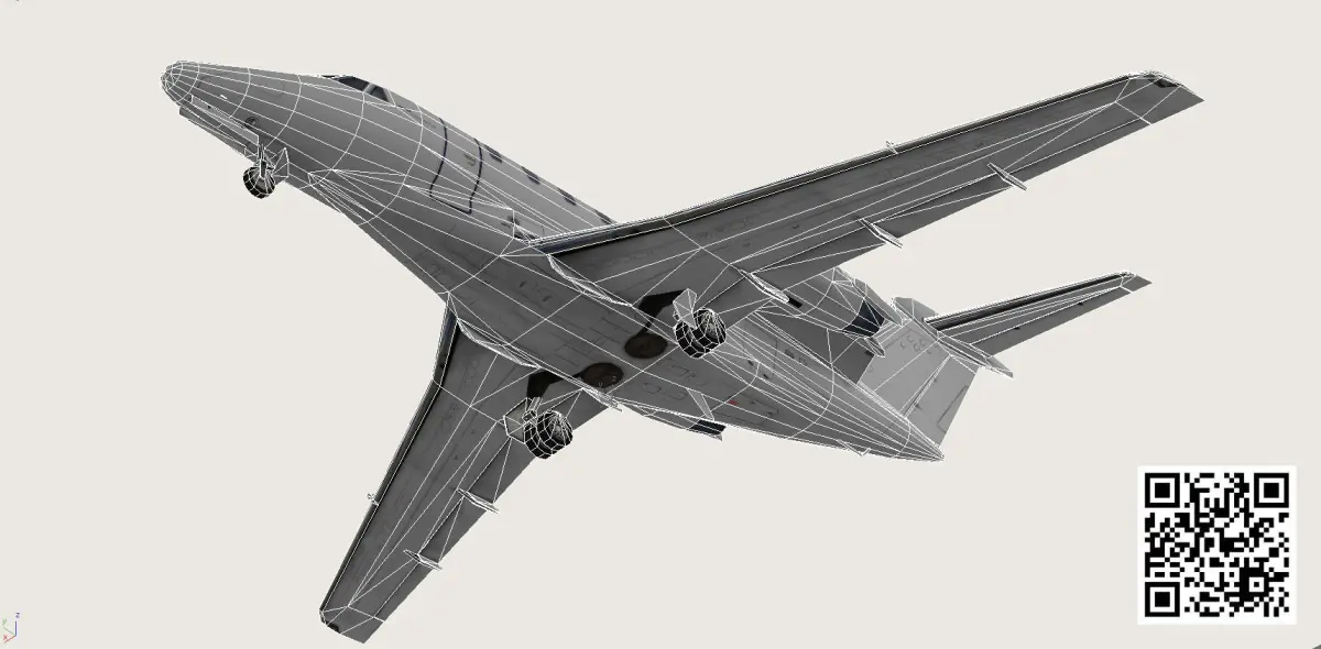 Low-poly medium-size corporate jet, with 3 lods, excellent model for video games, demonstrations, airport design and fly-simulators.