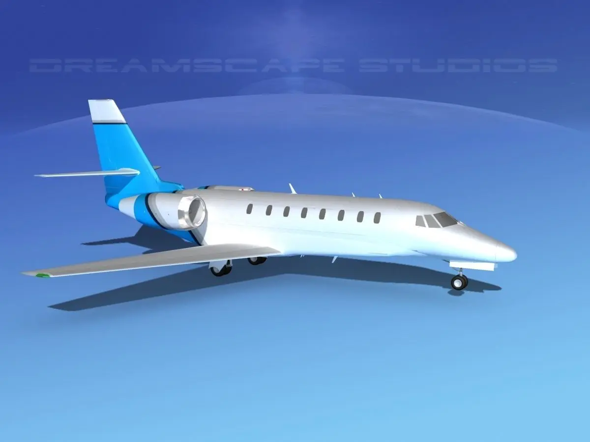 Cessna C680 Citation Soveriegn V14 This model is built very near to scale within actual general dimensions. It comes with a semi detailed cockpit, (viewable from the exterior) cabin seating, animateable propellers, flaps, ailerons, rudder, elevators, landing gear and landing gear doors. It is available in several different formats.The model is built to be used in in-flight animations and video or simulation. It can also be used to populate an airport scene.