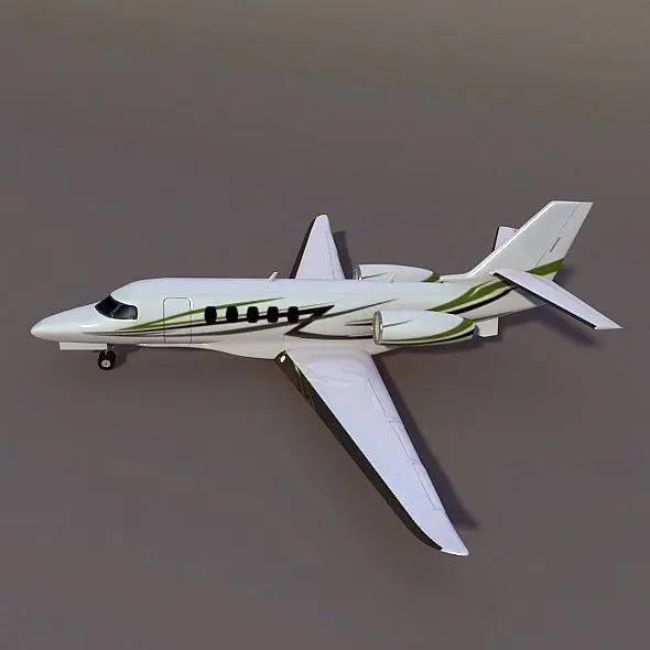 Pretty detailed 3d model of new Cessna business jet.Model created with blender3d version 2.76.Rendering previews with blender internal render software.Renderings created with subd 2,until my 3d models were zipped with subd 1.In blender file you can even use it without subdivisions if you like.There is only one texture projected from side view 2556x2556png file,with windows and stripe details.You can use this model for flying and for landing and you can pull wheels inside the fuselage.Also elavators are detached,but not rigged.Rudder is attached to the rest of the fuselage,but you can easily detach it.I have rigged wheel carriers,and where it's named axis that object you can rotate and pull in or out your wheels by axis.Most of the objects are named by object and by material too.Enjoy my 3d model of aircraft.
