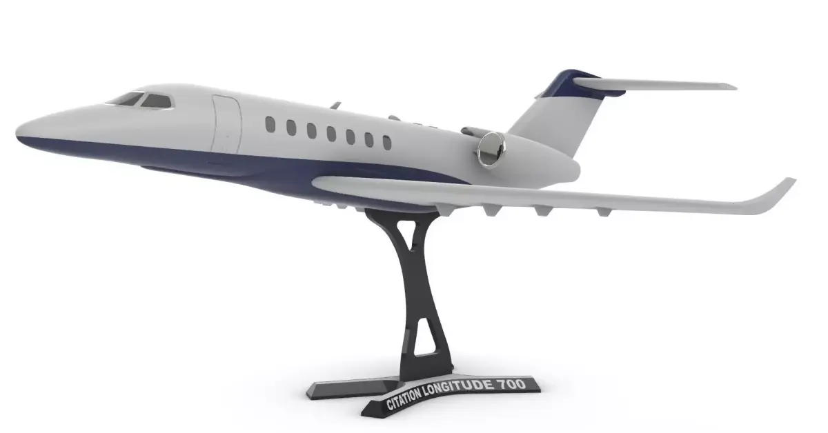 The Cessna Citation Longitude is a business jet produced by Cessna, part of the Cessna Citation family. It remains the largest business jet by Cessna. Announced at the May 2012 EBACE, the Model 700 made its first flight on October 8, 2016, with certification obtained in September 2019. The aluminum airframe has the fuselage cross-section of the Citation Latitude, stretched by a seat row. Powered by Honeywell HTF7000 turbofans, it has a new ~28° swept wing and a T-tail for a 3,500 nmi (6,500 km) range.