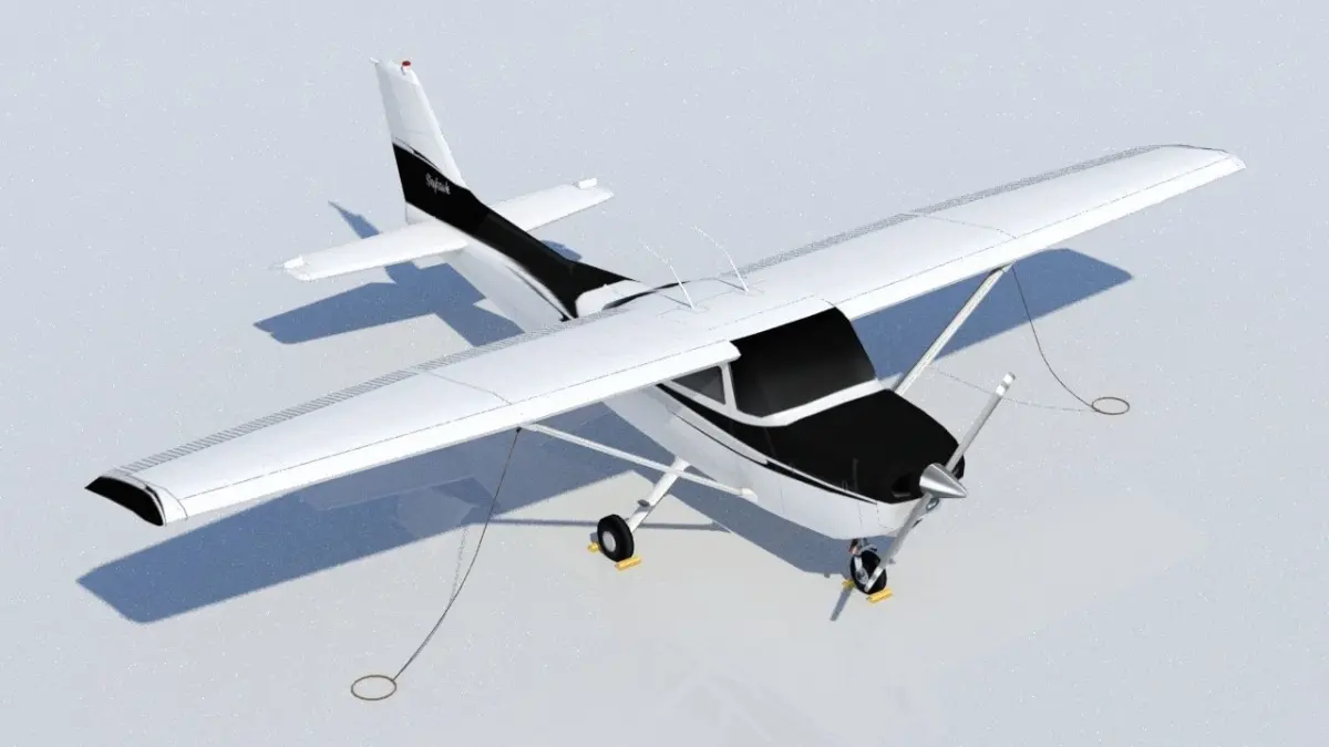 Nice crafted 3D low-poly model of a Cessna C172, optimized for minimal complexity with less than 5000 polygons. Despite its low polygon count, the model accurately captures the iconic design features of the Cessna C172, making it ideal for real-time rendering in games or simulations.