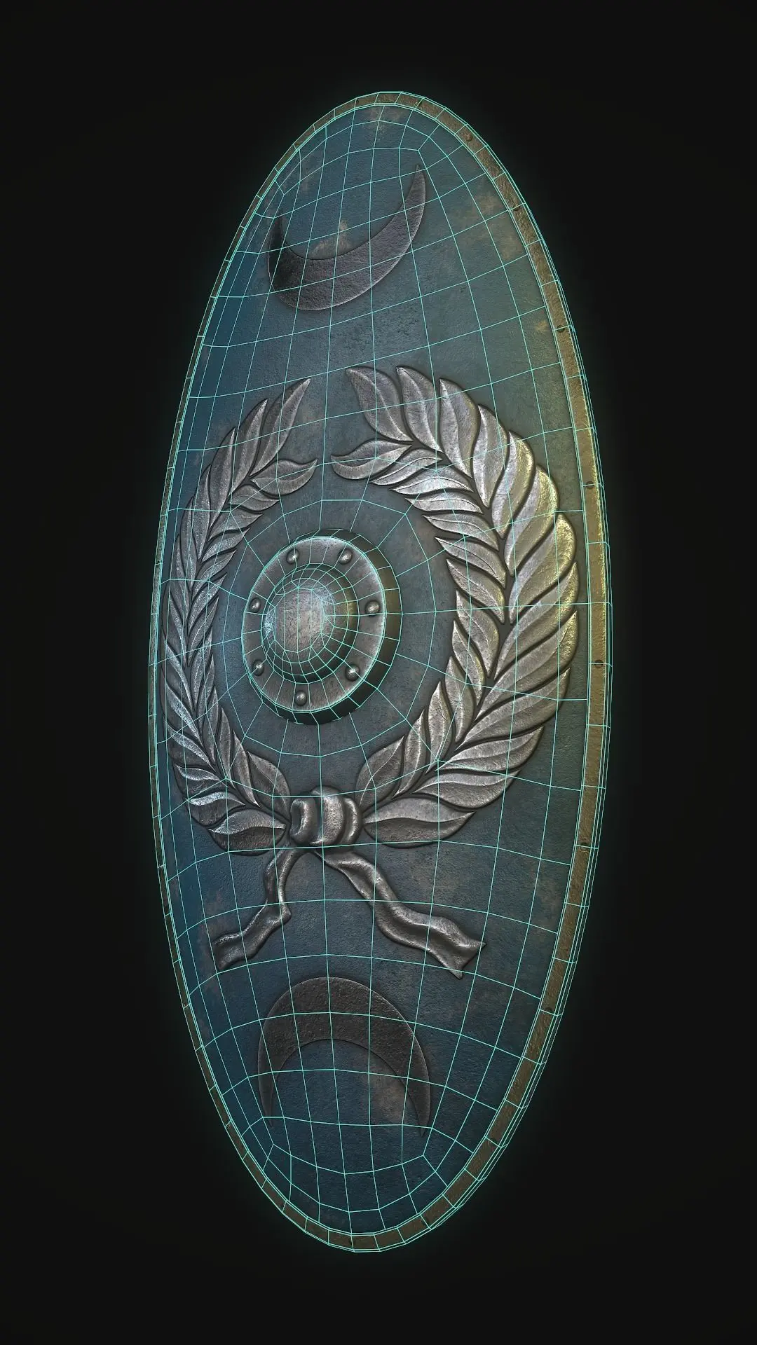 3D model of the Roman shield, the model consists of 2428 triangles, has uw maping and a set of BPR textures with a resolution of 4k, the model can be used in game engines