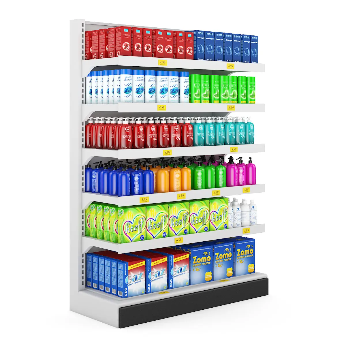 CGAxis Models Volume 32 - SUPERMARKET is collection containing 25 highly detailed 3D models of supermarket/shop equipment. You can find in it : market shelves with various products, fridges, cashier desk, security gates. Great for your interior visualization projects. Models are mapped and have materials and textures. Compatible with 3ds max 2008 or higher and many others