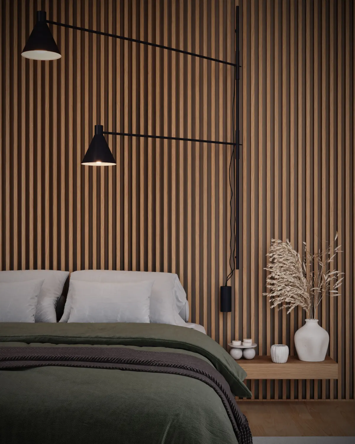 This interior visualisation explores the subtle power of materiality, composition, and atmosphere in architectural storytelling. Set within a minimalist wooden framework, the project embraces vertical rhythm through slatted timber panelling, contrasting with soft, rounded furniture elements that invite rest and comfort. The interplay of textures - from the grain of the wood to the tactile weave of the bed linens and upholstery - was carefully calibrated to enrich the viewer's sense of presence within the space.Natural light becomes a protagonist, flooding the room through generous floor-to-ceiling glazing. This contrast between the dense forest outside and the warm, interior palette creates a meditative ambience, where shadow and glow dance delicately across surfaces. Particular attention was given to how the light interacts with the fireplace, the layers of bedding, and the sheer partition panels that frame the wardrobe, offering an almost cinematic spatial depth.The composition was designed to balance openness and intimacy, using symmetry and asymmetry in harmony. Organic accents such as dried botanicals and ceramic vessels anchor the space emotionally, while the restrained lighting choices - from wall-mounted lamps to the soft glow of the bedside fixture - underscore the mood without overwhelming the scene.The initial base render was developed during the Semana do Render Brabo event, organized by of3dacademy, serving as a foundation for creative exploration. I, João Pedro Serafim, later refined and enhanced the scene - focusing on post-production detailing, tonal balance, and fine texture work to elevate the overall visual impact.