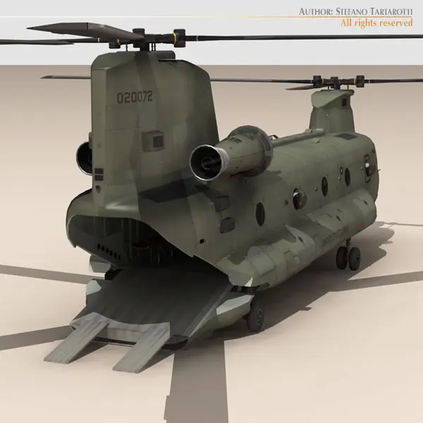 The CH-47 Chinook is an American twin-engine, tandem rotor heavy-lift helicopter. Its top speed of 170 knots 196 mph, 315 km/h is faster than contemporary utility and attack helicopters of the 1960s. It is one of the few aircraft of that era that is still in production and front line service with over 1,179 built to date. Its primary roles include troop movement, artillery emplacement and battlefield resupply. It has a wide loading ramp at the rear of the fuselage and three external-cargo hooks.