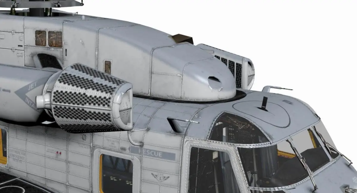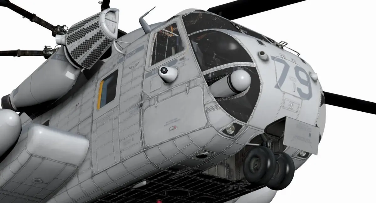 Textured and animated model of the CH-53E Super Stallion from Sikorsky. It is a relatively low polygon model but highly accurate properly scaled to the real world dimensions so it is perfect for games or for realtime 3D engine presentations and showcases. The panels, instruments and gauges are modeled in details but only partially animated. Simplified extra low-polygon models are included on a layer for building up mesh collides in game engines for fuselage, interior and doors. Collider mesh pivots matches with the position and orientation of the visual parts they represent.