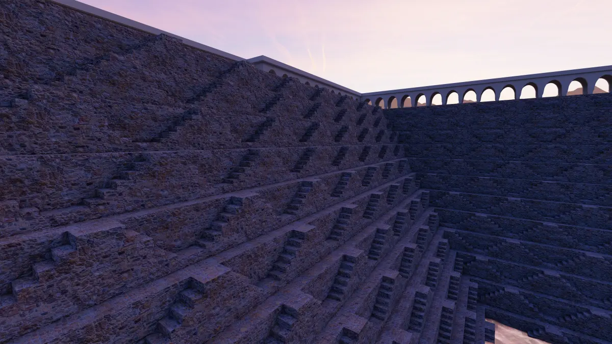 Ancient Indian scriptures made references to the construction of wells, canals, tanks, and dams and their efficient operation and maintenance.[2] This site combined many of these operations to allow for easy access to local water. At the bottom of the well, the air remains 5-6 °C cooler than at the surface, and Chand Baori was used as a community gathering place for locals during periods of intense heat. One side of the well has a haveli pavilion and resting room for the royals.