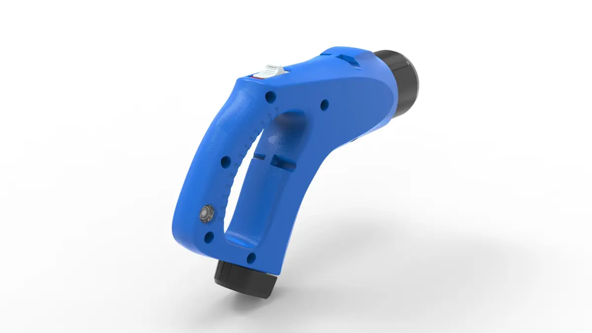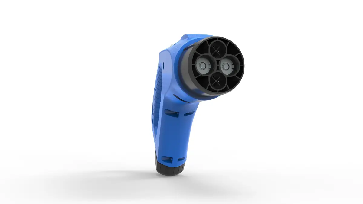 Highly detailed 3D model of a CHAdeMO EV charging connector, accurately modeled based on real-world specifications. This model is ideal for use in EV charging station designs, technical visualization, simulation, or educational materials related to electric vehicle infrastructure.