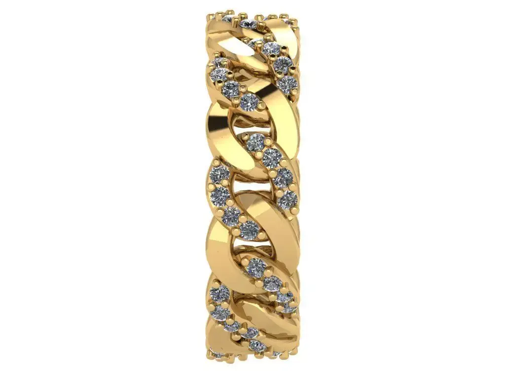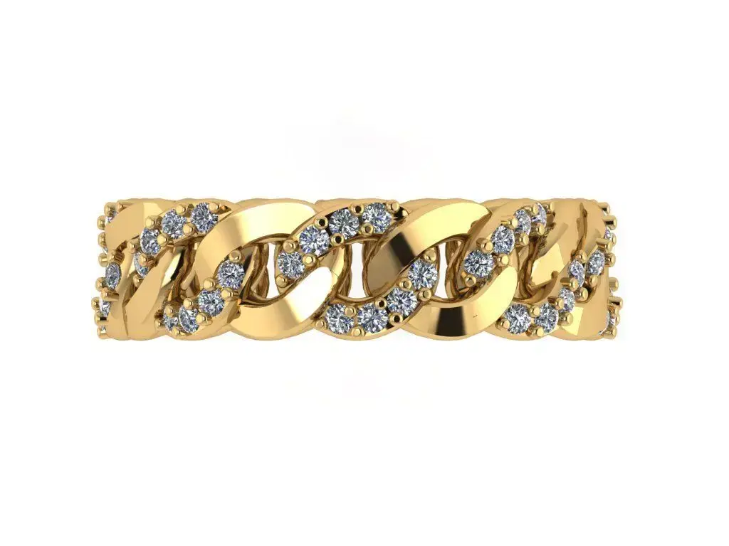 This uniquely elegant ring features a delicate chain-inspired design crafted in solid gold, with shimmering diamonds set seamlessly within each link. The flexible, fluid structure wraps gracefully around the finger, offering a comfortable fit and a touch of movement-inspired sophistication. Each diamond is meticulously set to catch the light from every angle, creating a continuous sparkle that enhances the ring's modern yet timeless appeal. Perfect for those who appreciate innovative design and understated luxury, this piece is ideal as a standout accessory for daily wear or a meaningful gift symbolizing connection and elegance.