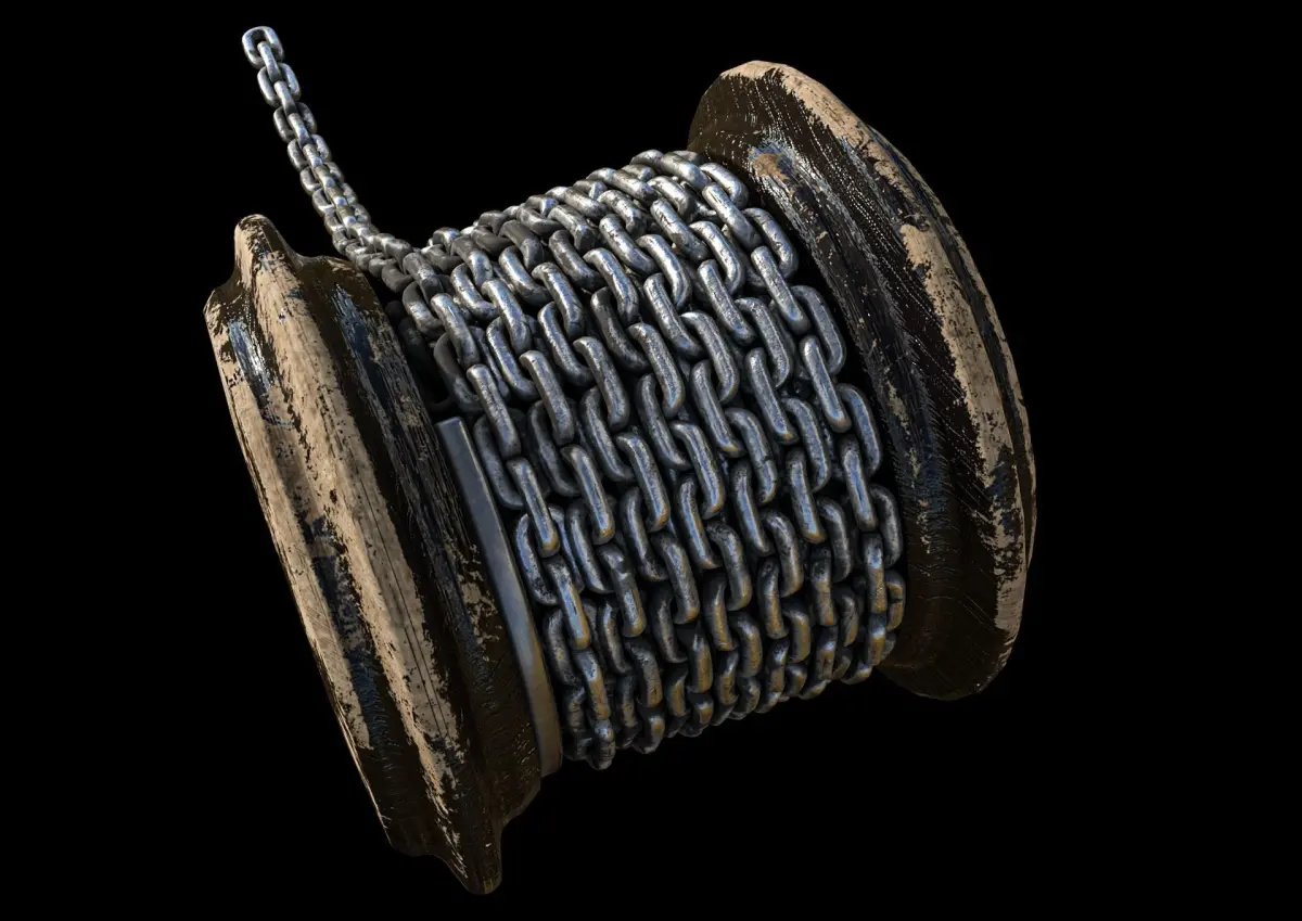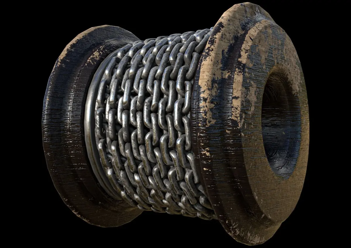 low poly chain with spool model. 2k pbr png textures are included.low and hih versions are included.