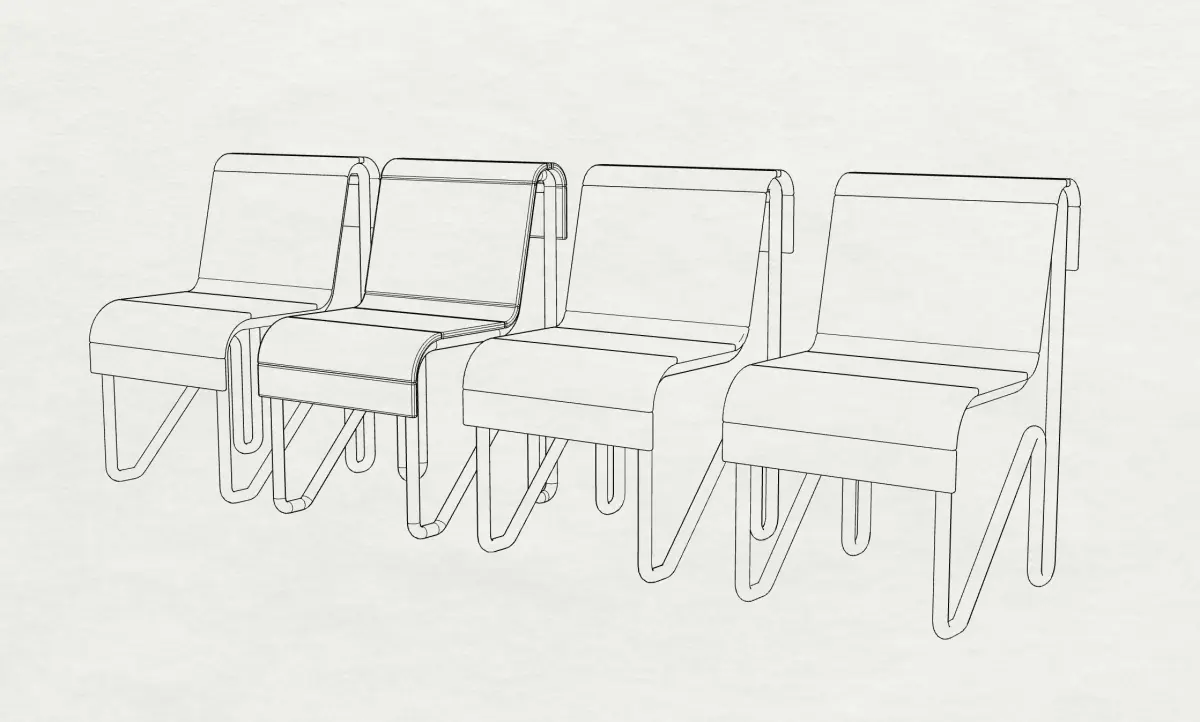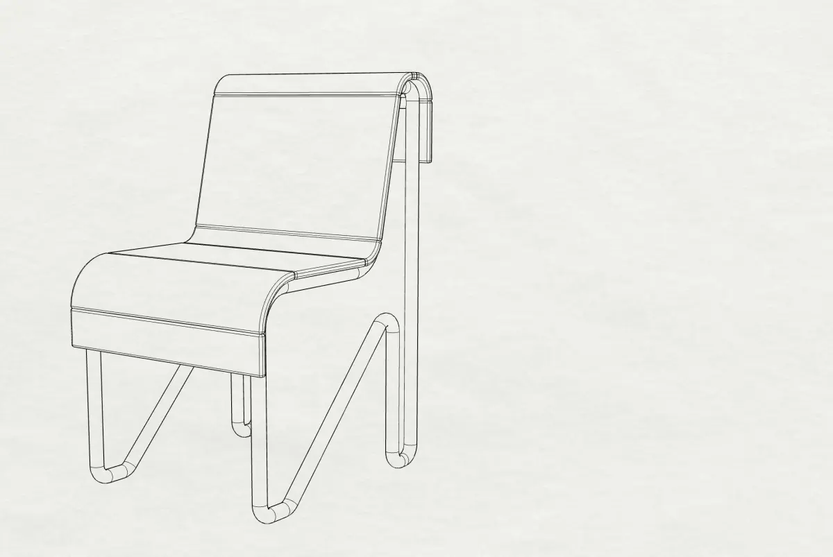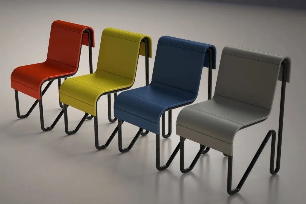 Chair designed for interior (dinning / bedroom space), minialist style, inspired by Piet Mondrian’s Composition with Red Blue and Yellow (1930).