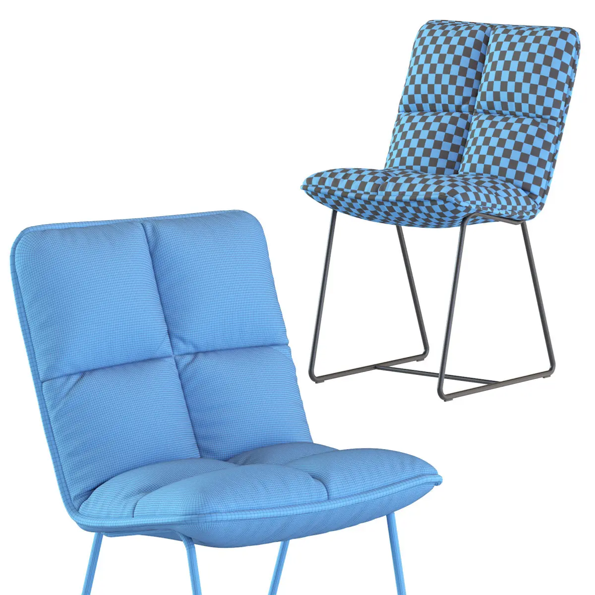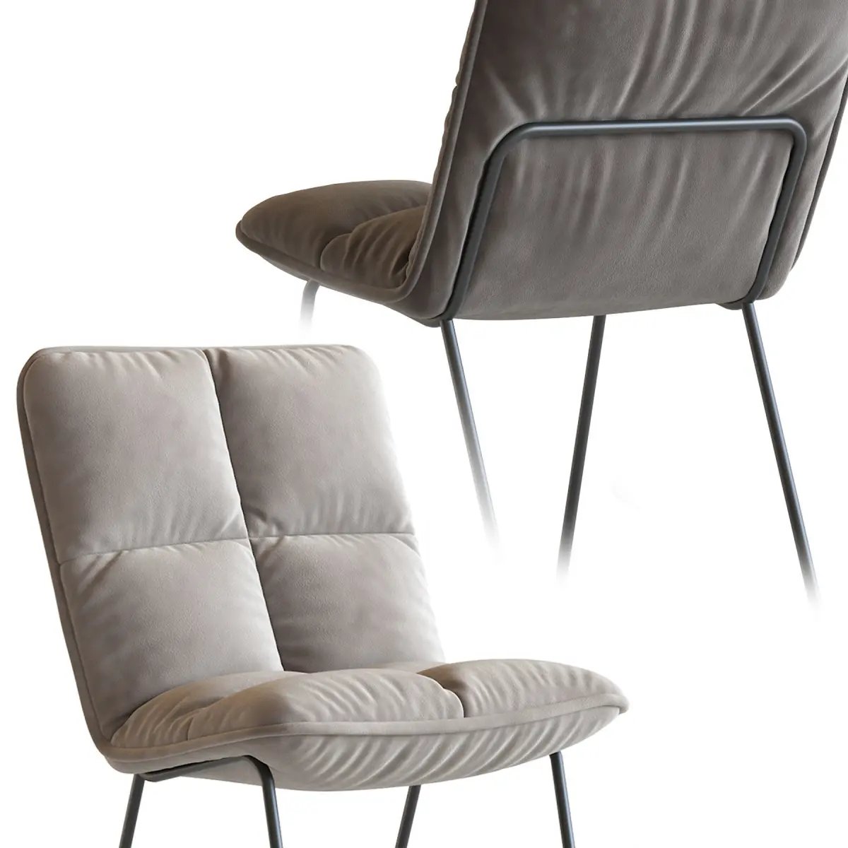 One of the basic pieces of furniture, a chair is a type of seat. Its primary features are two pieces of a durable material, attached as back and seat to one another at a 90°-or-slightly-greater angle, with usually the four corners of the horizontal seat attached in turn to four legs—or other parts of the seat's underside attached to three legs or to a shaft about which a four-arm turnstile on rollers can turn—strong enough to support the weight of a person who sits on the seat (usually wide and broad enough to hold the lower body from the buttocks almost to the knees) and leans against the vertical back (usually high and wide enough to support the back to the shoulder blades). The legs are typically high enough for the seated person's thighs and knees to form a 90°-or-lesser angle.[1][2] Used in a number of rooms in homes (e.g. in living rooms, dining rooms, and dens), in schools and offices (with desks), and in various other workplaces, chairs may be made of wood, metal, or synthetic materials, and either the seat alone or the entire chair may be padded or upholstered in various colors and fabrics.