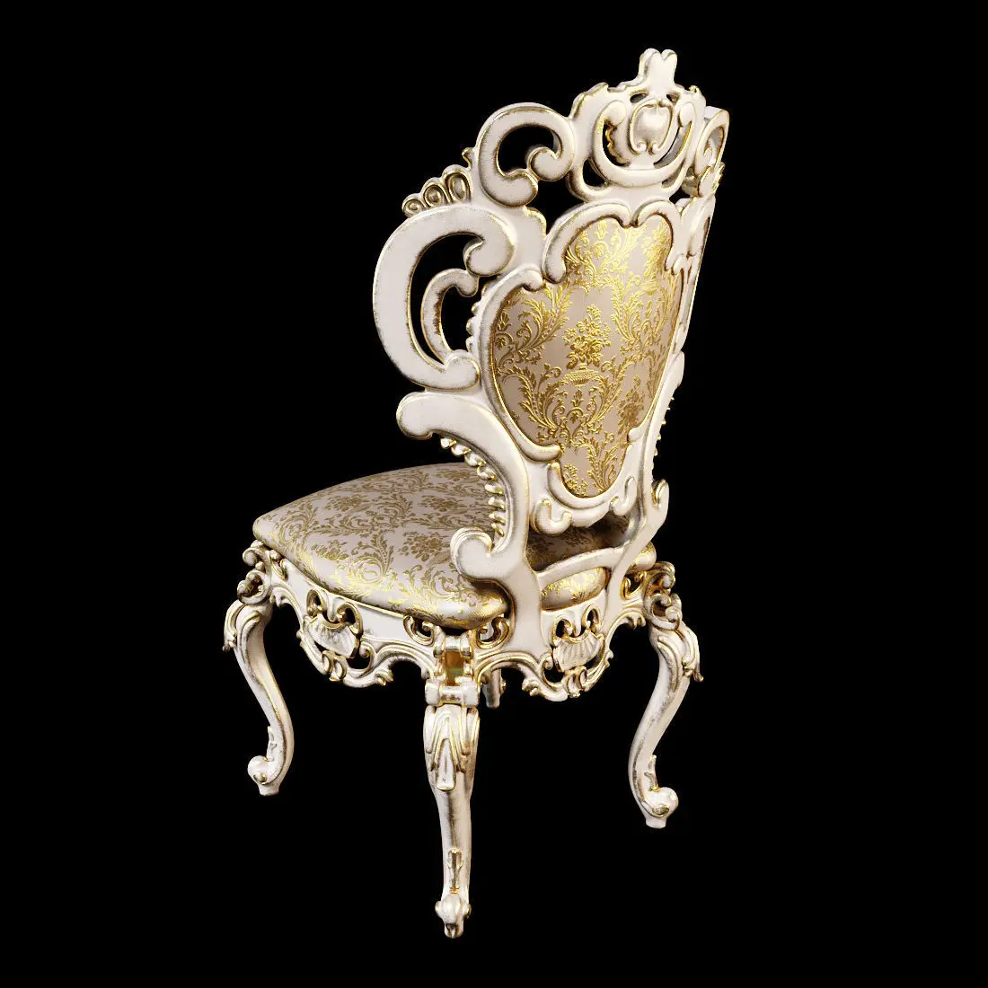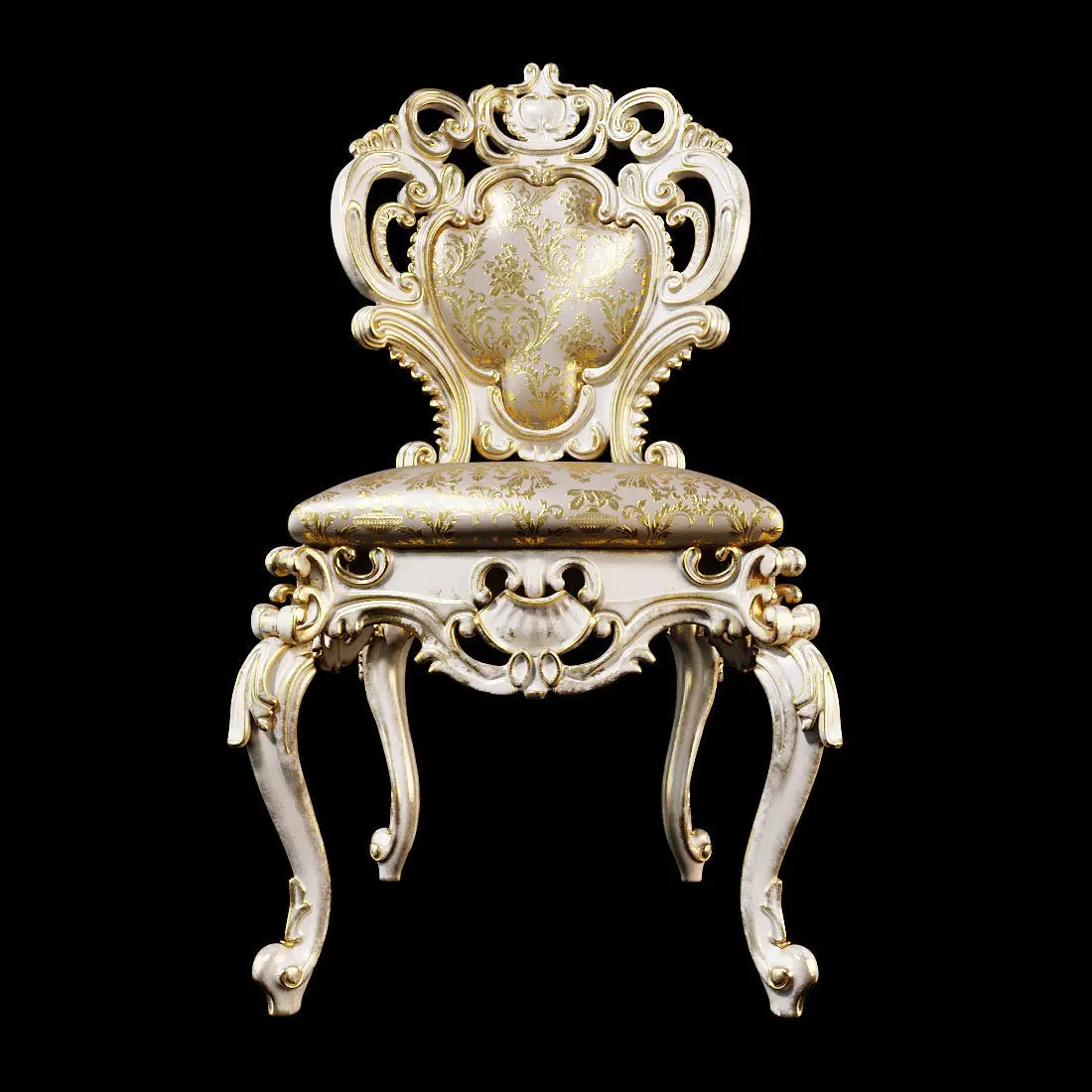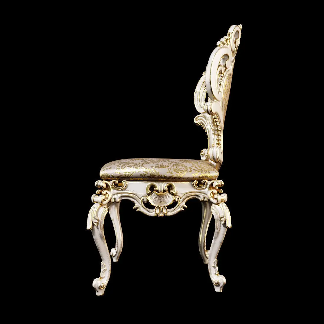 Baroque chair, from the SILIK factory, Lo Stile Di Classe collection. The structure is made of solid wood and decorated with artistic carvings. Finishing - polychromatic crackle. The upholstery is made of jacquard fabric. The chair combines elegance and originality; it looks somewhat elaborate.DIMENSIONS: Length (cm): 54; Height (cm): 113; Width (cm): 60