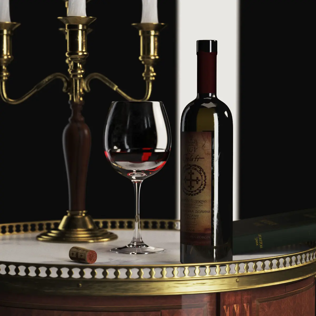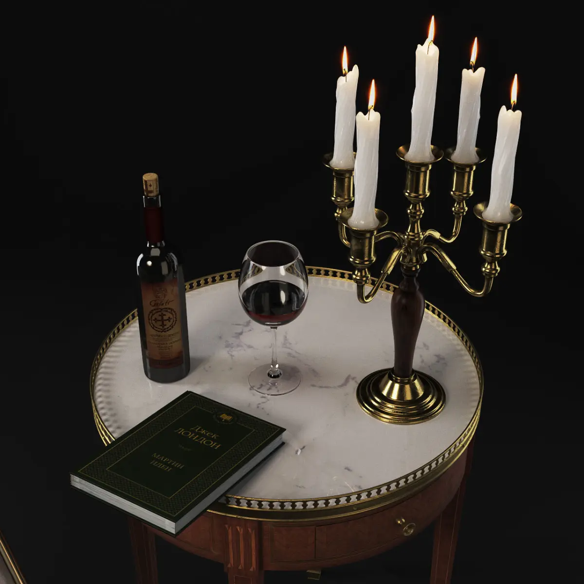 CHAIR MARBLE TABLE TABLE CANDLAND WINE BOTTLE STEPS BOOK Low-poly 3D model
