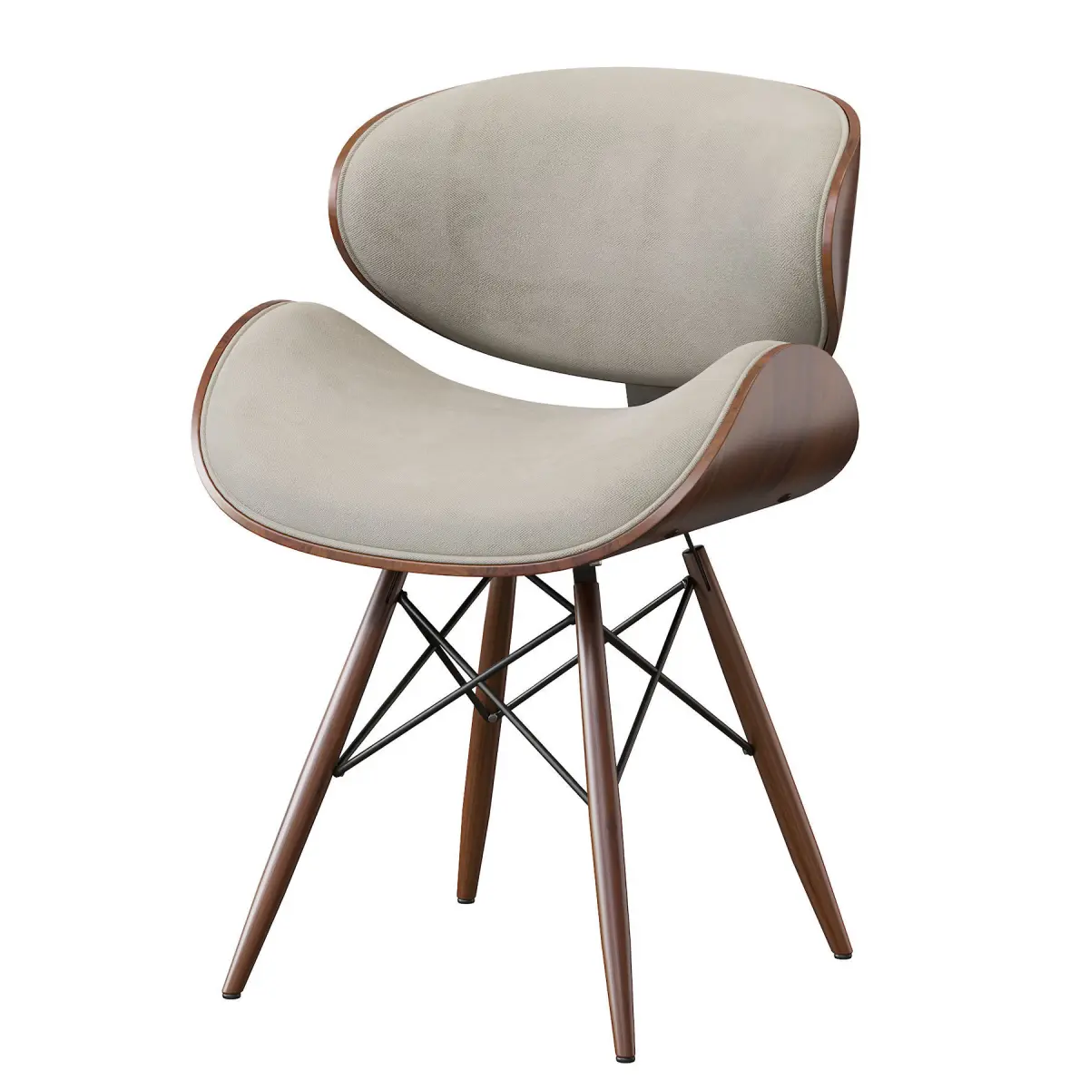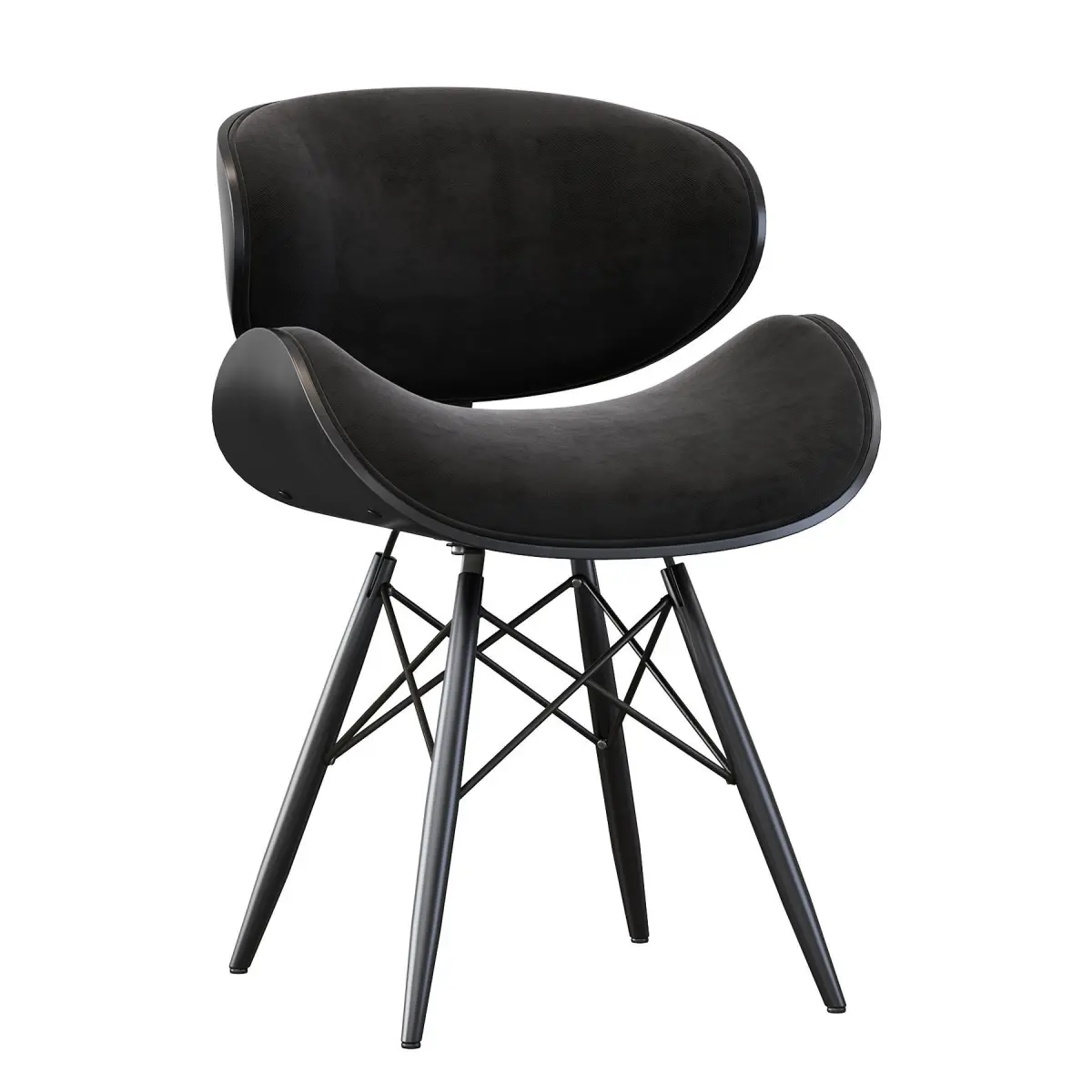 - Bent plywood seat in walnut color, finished with ecological leather in black