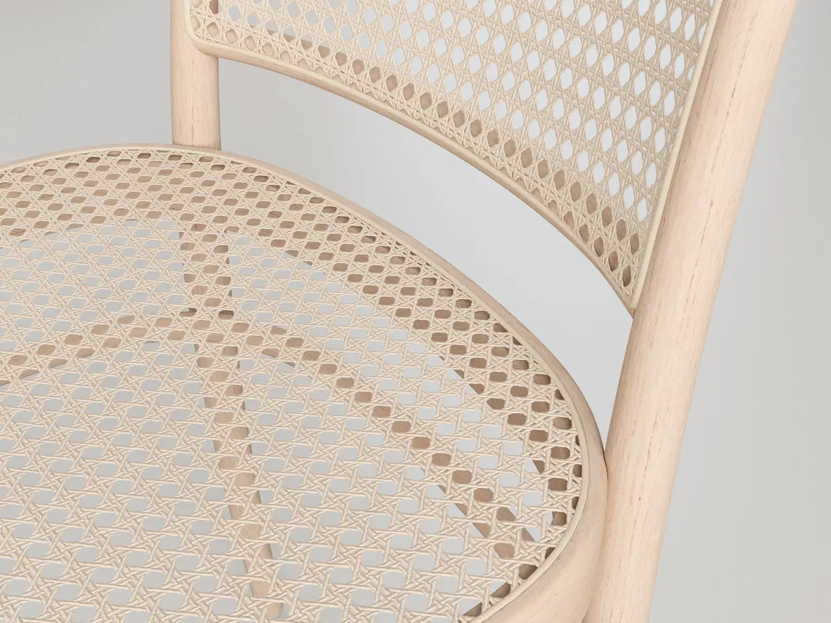Hi-res 3D model of a wooden rattan chair modelled in maya. Preview images rendered with VRay.